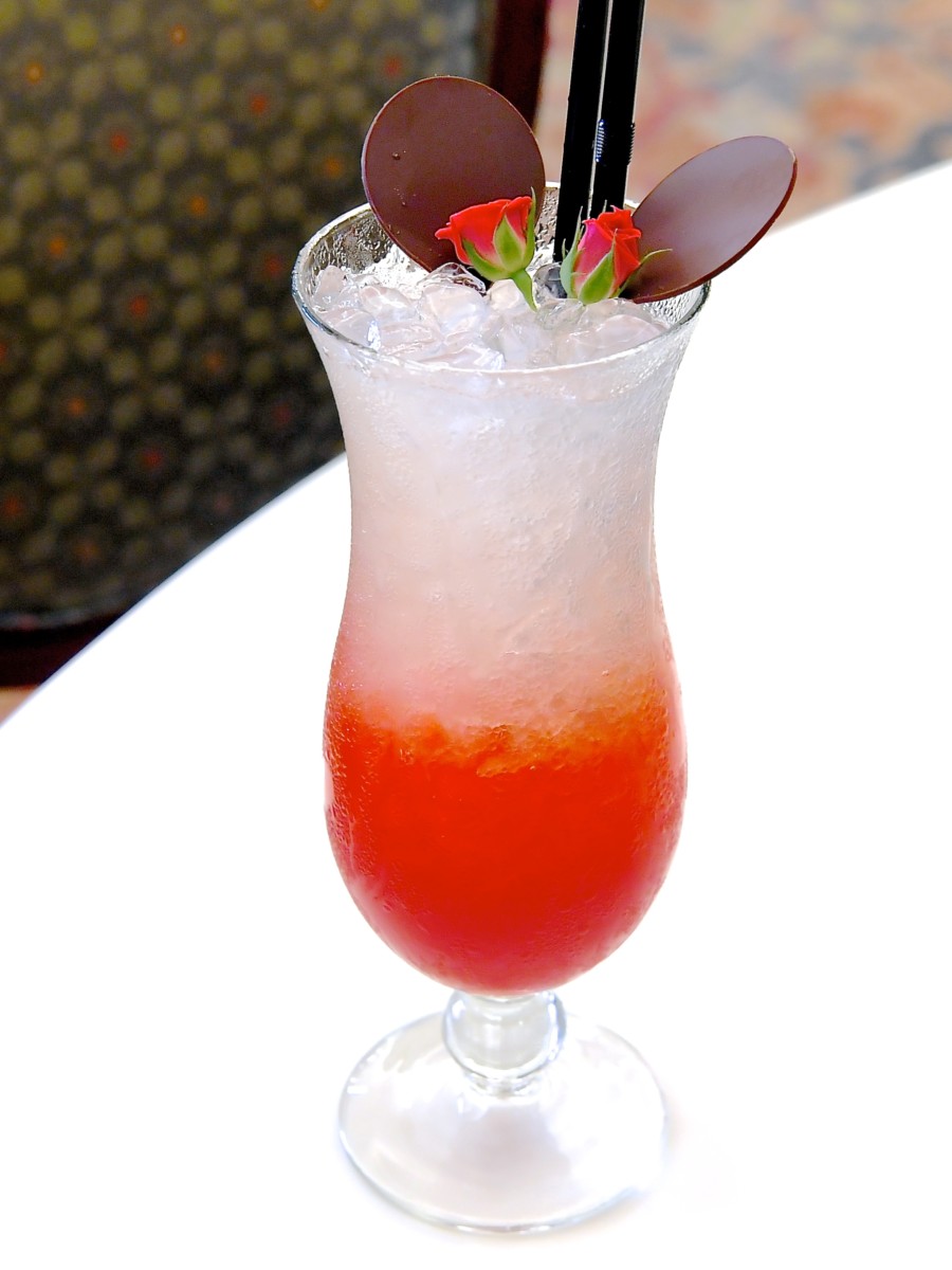 ミニーちゃんのドリンクは、マンゴージュース、アップルジュース、ストロベリーシロップ、グレナデンシロップ入り。