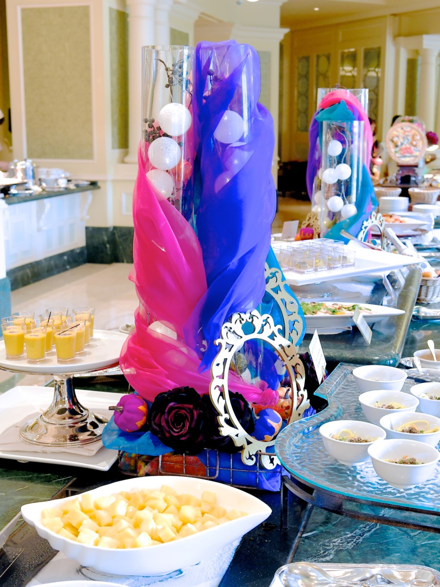 冷製料理コーナーには『白雪姫』の魔法の鏡をモチーフにした妖艶なデコレーション。