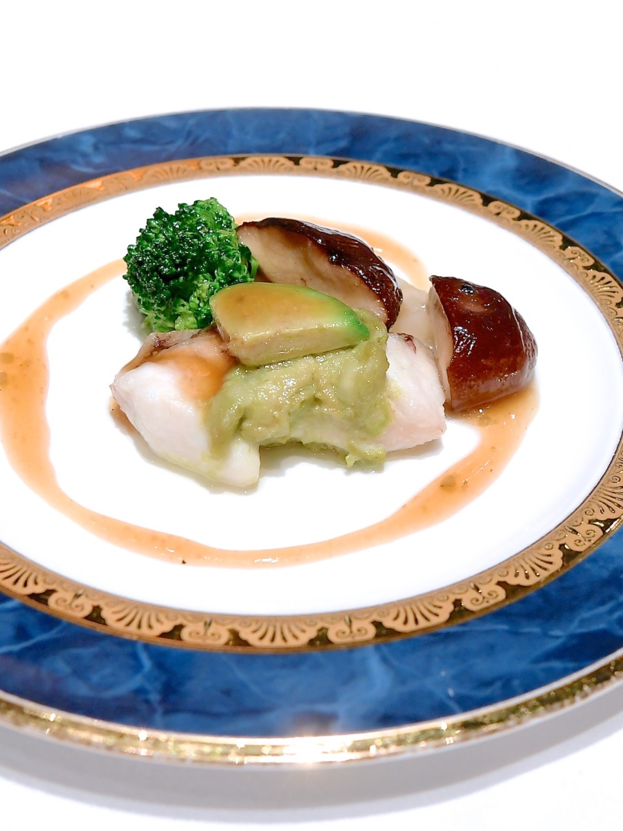 ふんわりした白身魚とアボカドの葱生姜蒸し。