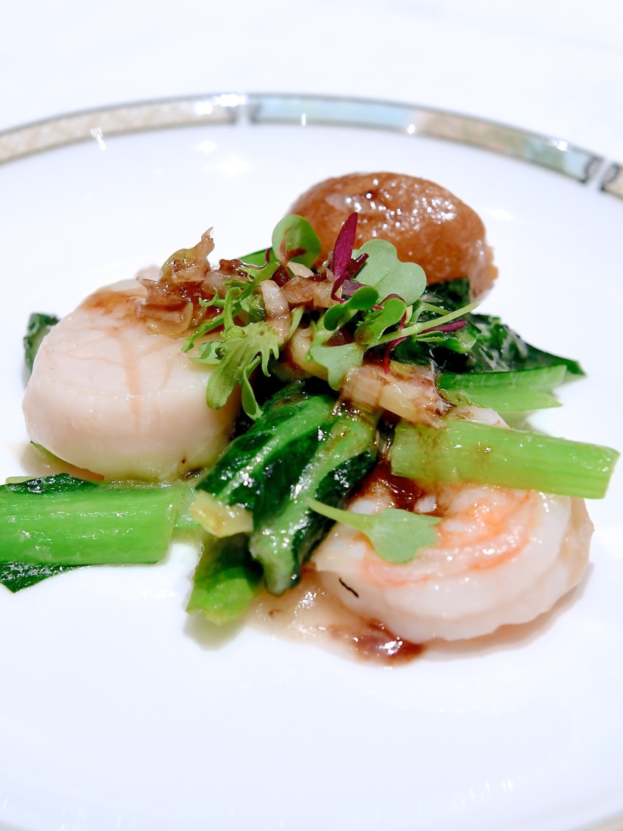 +800円で「鮑と海老と季節の野菜の炒め バルサミコソース添え」に変更できます。