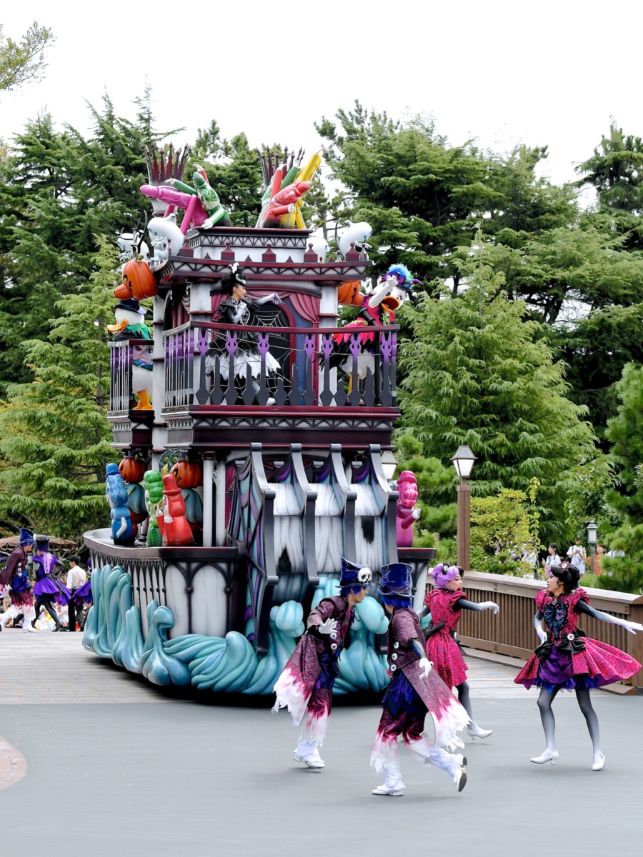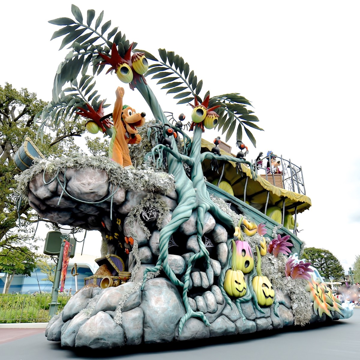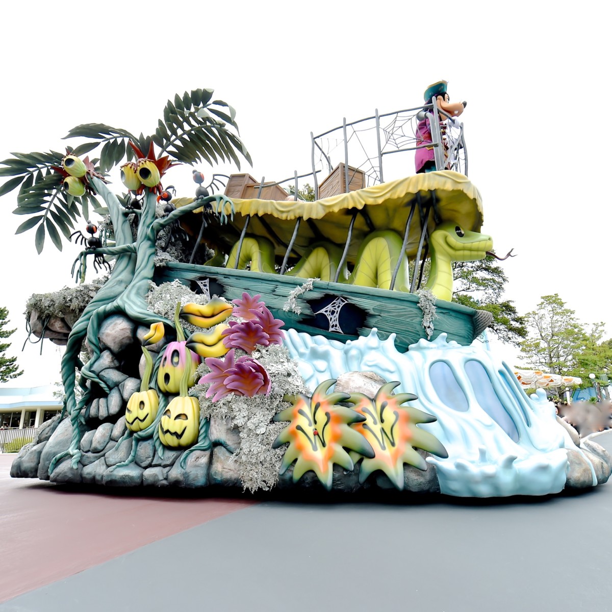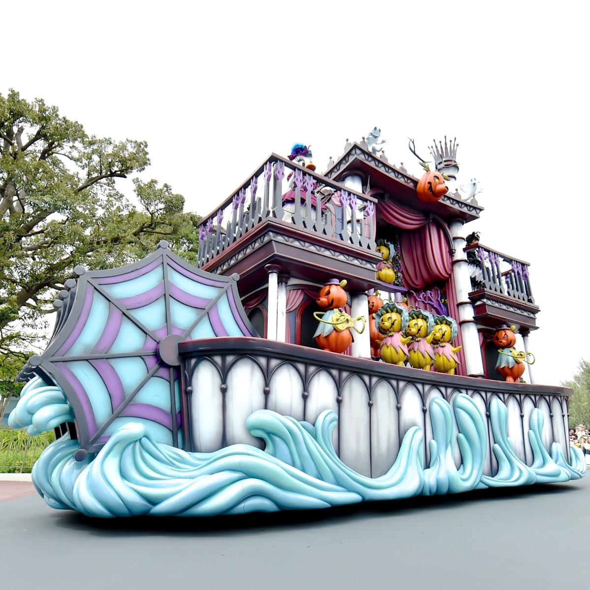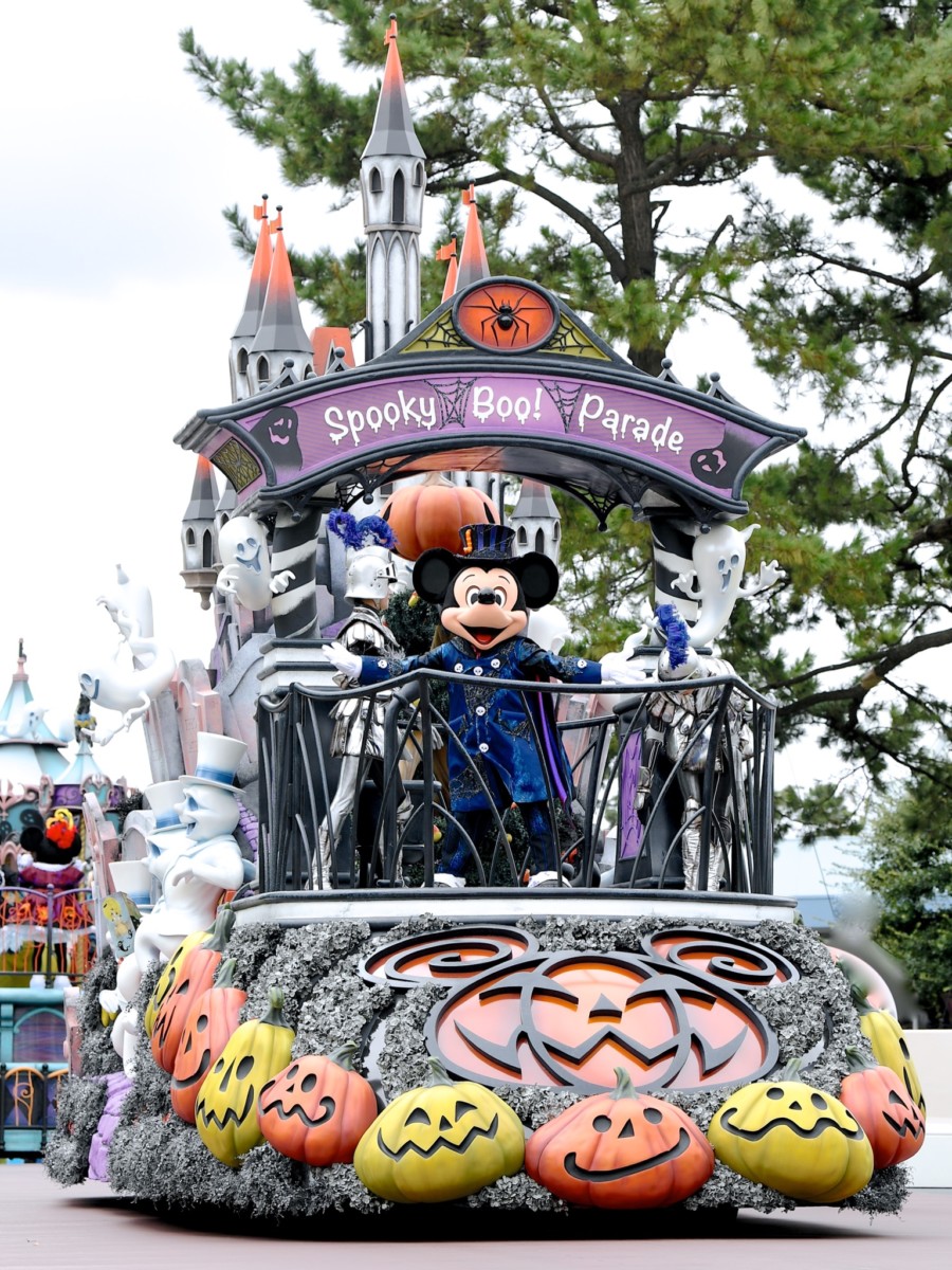 パレードが進むにつれストーリーが進行し、鑑賞する場所によって異なるストーリーを楽しむことができる新パレード「スプーキー“Boo!”パレード」