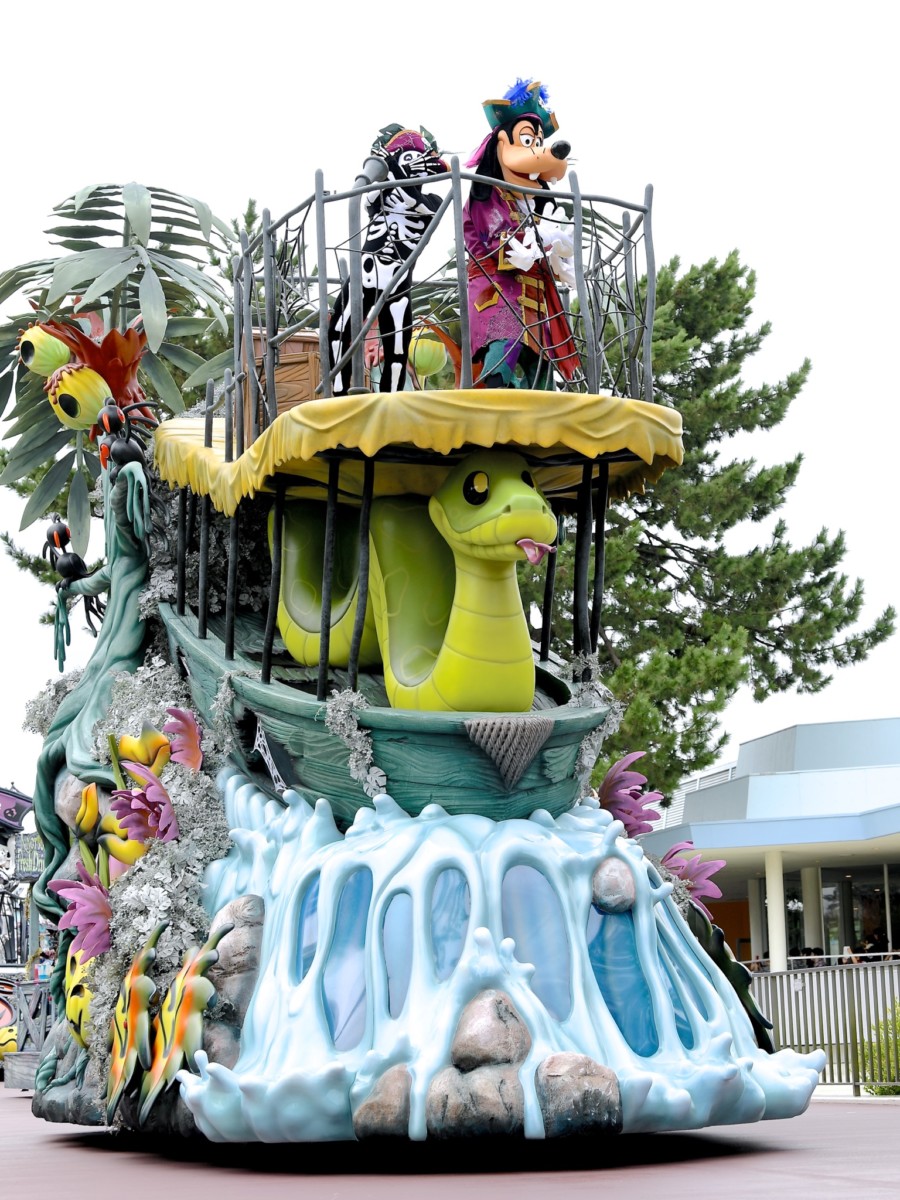 巨大なヘビや奇怪な鳥たちの集うアドベンチャーランドをイメージしたフロート