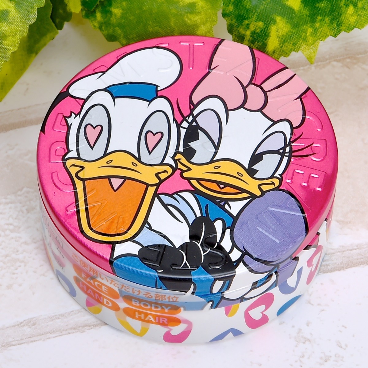 デイジーに抱きつかれて目をハートにして、嬉しそうな様子のドナルドがデザインされたスチームクリーム。