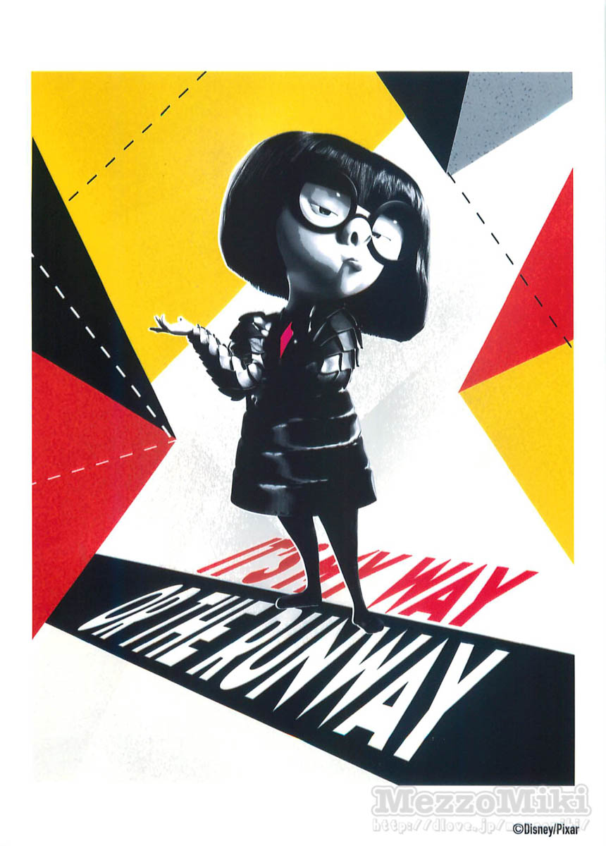 「Mr. インクレディブル」たちのスーツを手がけるデザイナー「エドナ・モード」のファッショナブルなデザイン・アート。