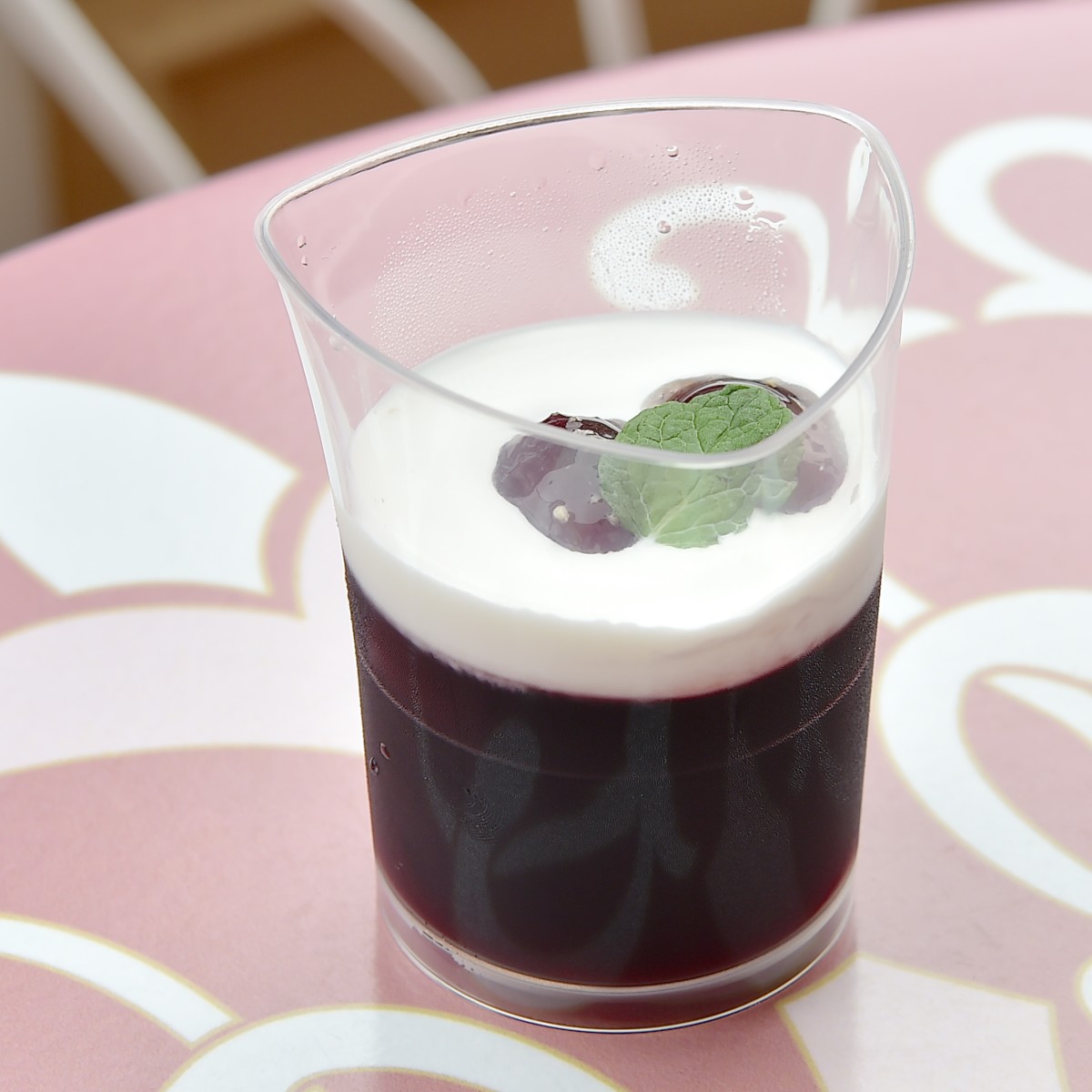 ぶどうの贅沢な甘さとなめらかなクリームが「スウィートハート・カフェ」の定番デザート「グレープゼリー」