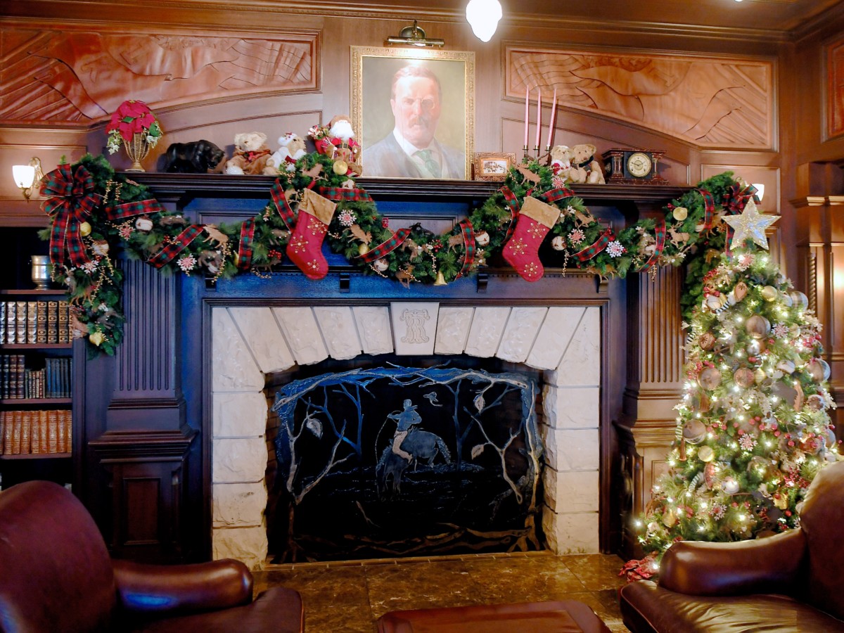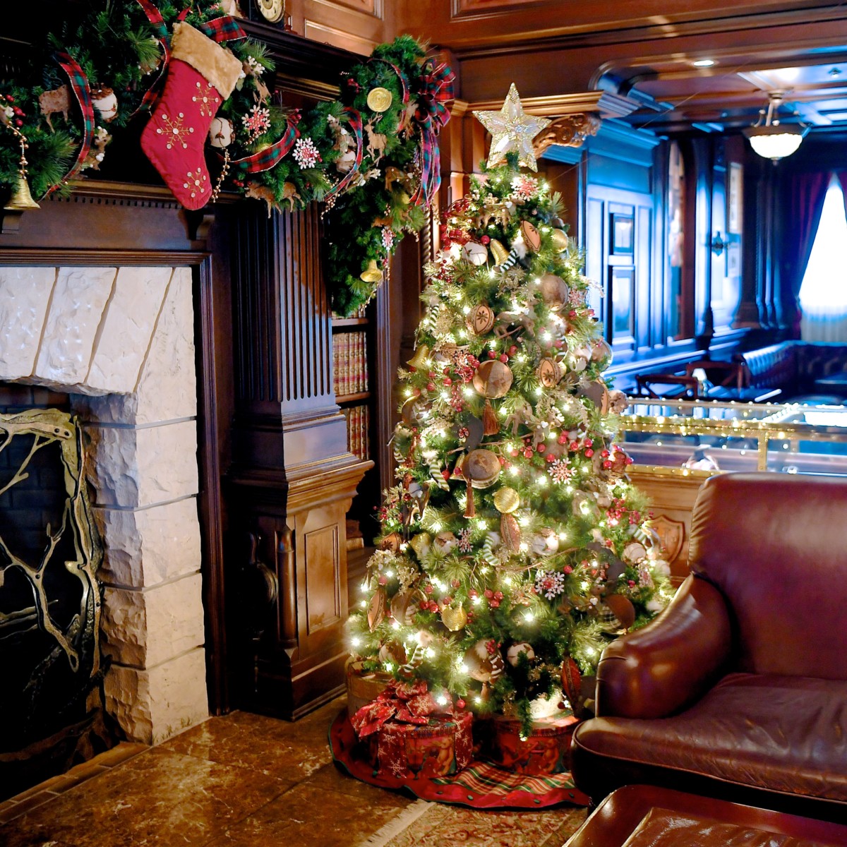 クリスマスツリーが飾られたソファー席なども用意されている「テディ・ルーズヴェルト・ラウンジ」