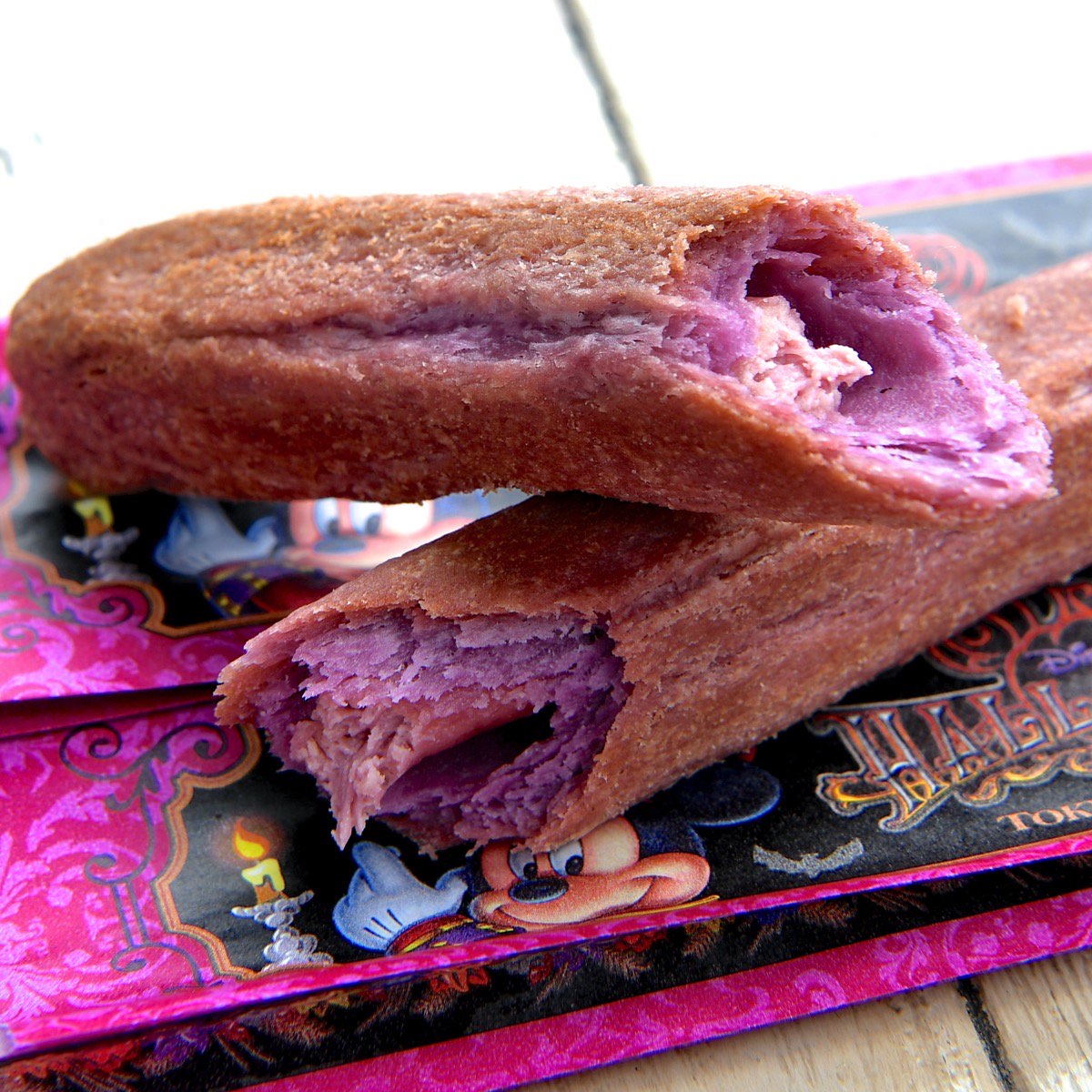 スティックタイプのパイ生地に紫イモのクリームがたっぷり入ったティポトルタ。