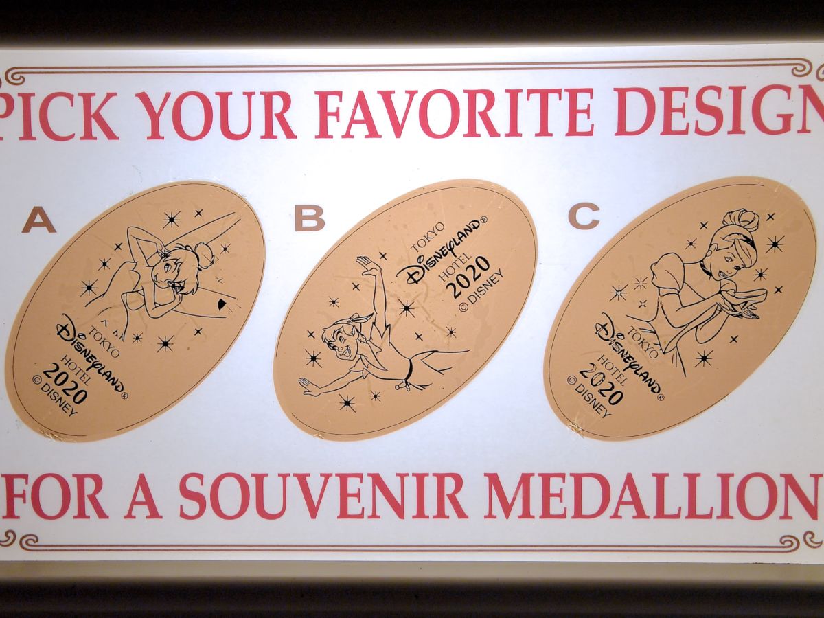 東京ディズニーリゾート・オフィシャルホテルへのアクセスに便利なベイサイドステーションで販売されている3種類のスーベニアメダル。