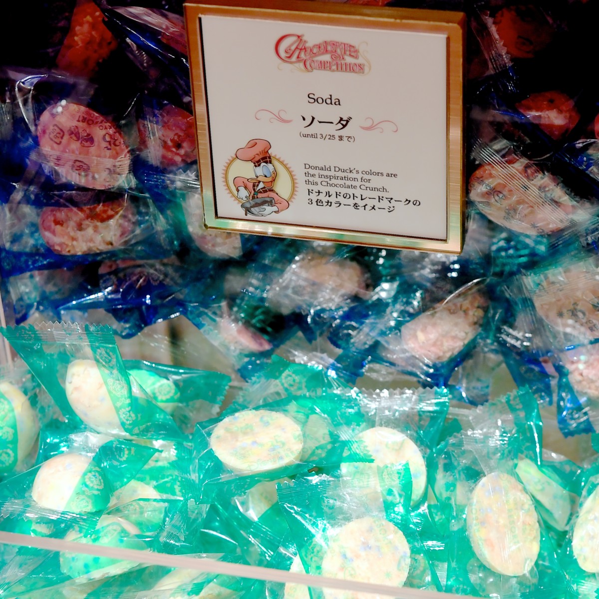 ドナルドカラーのブルー、イエロー、ホワイトの3色を組み合わせたソーダ味のチョコレートクランチ。