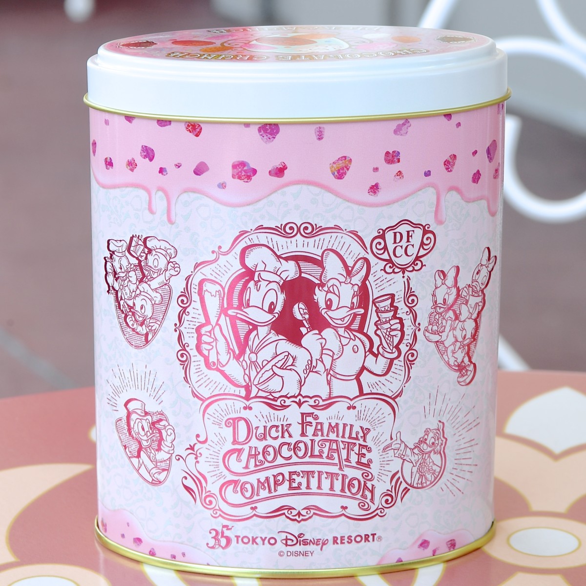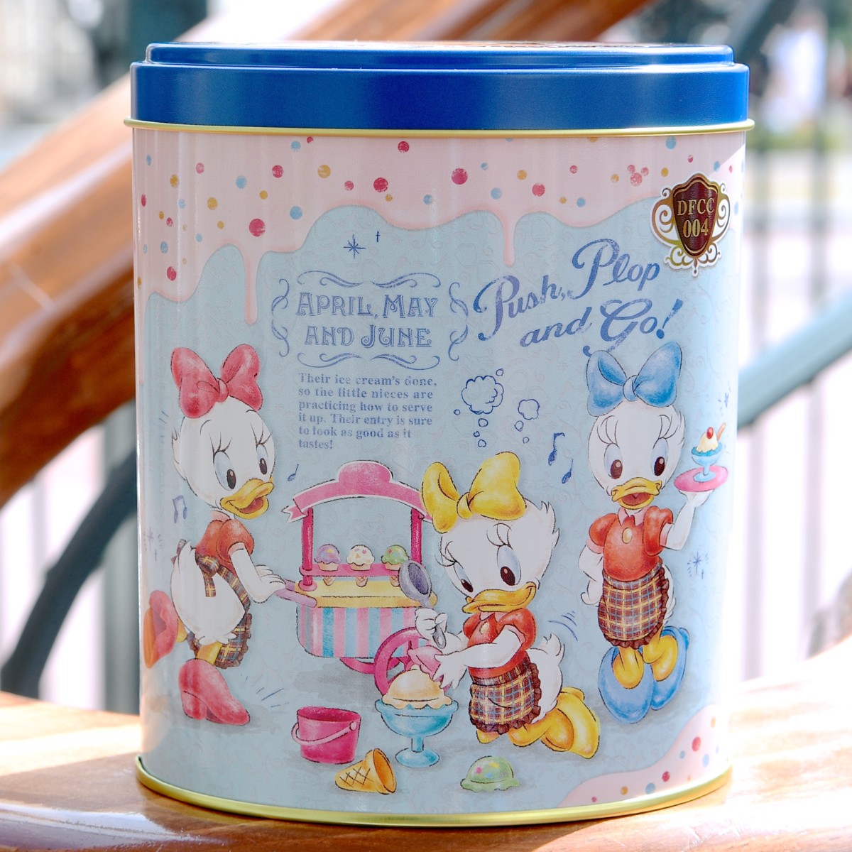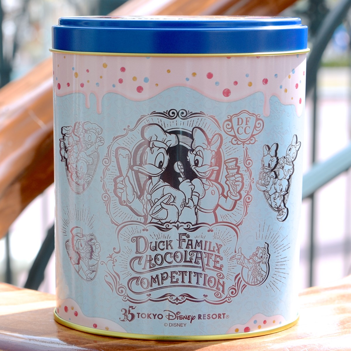 ドナルドたちダックファミリーをデザインした缶パッケージ。