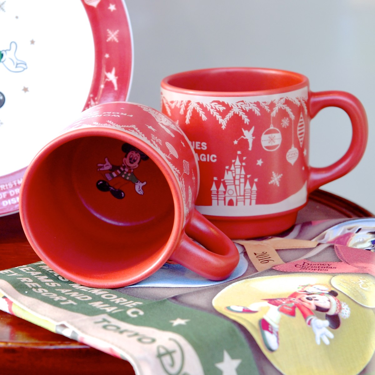 内側の底に1983年のクリスマスコスチュームを着たミッキーがデザインされたマグ。