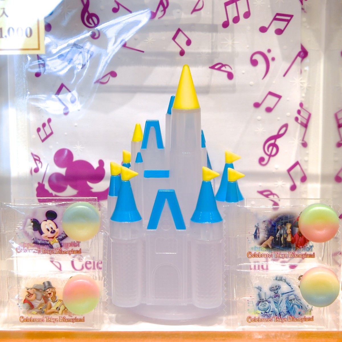 シンデレラ城デザインのケースに入ったカラフルなキャンディーのお土産。