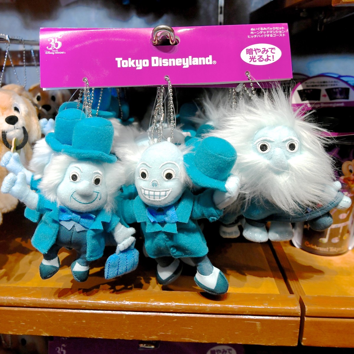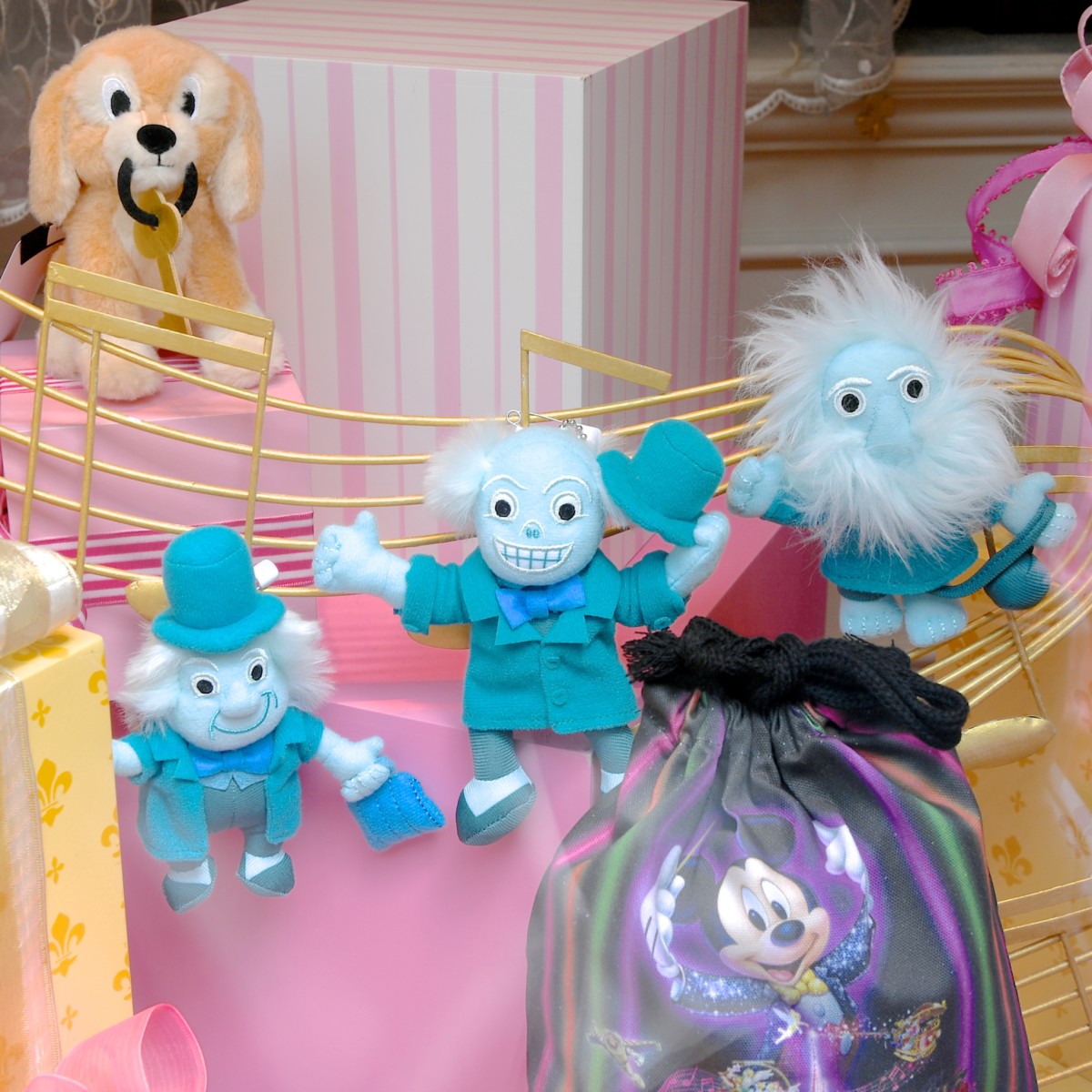 アトラクション「ホーンテッドマンション」に登場するヒッチハイクするゴーストたちをデザインしたぬいぐるみバッジ3個セット。