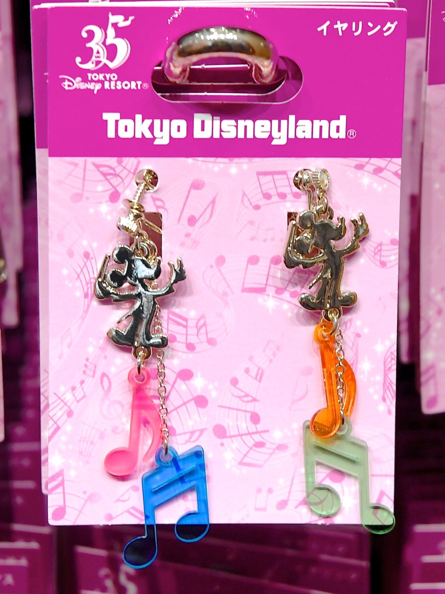 指揮者ミッキーとカラフルな音符がデザインされたイヤリング。