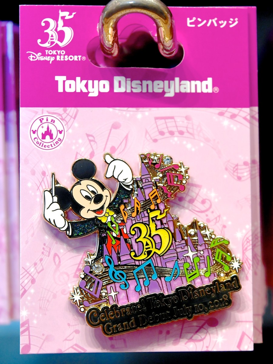 同じく指揮者ミッキーと「Celebrate!Tokyo Disneyland」ショー開演日2018年6月10日がデザインされたピンバッジ。