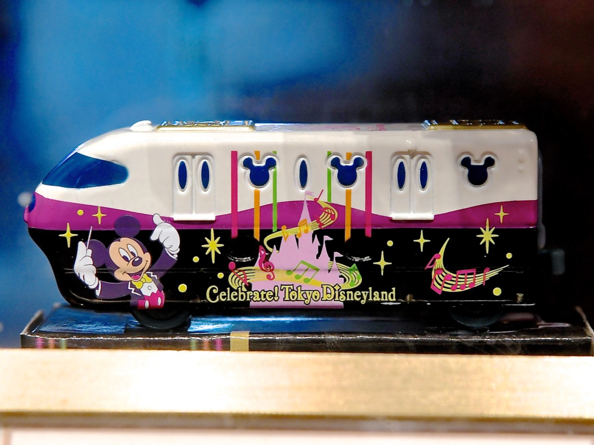 ディズニーリゾートライナートミカのラッピングがセレブレイト東京ディズニーランドデザインに。