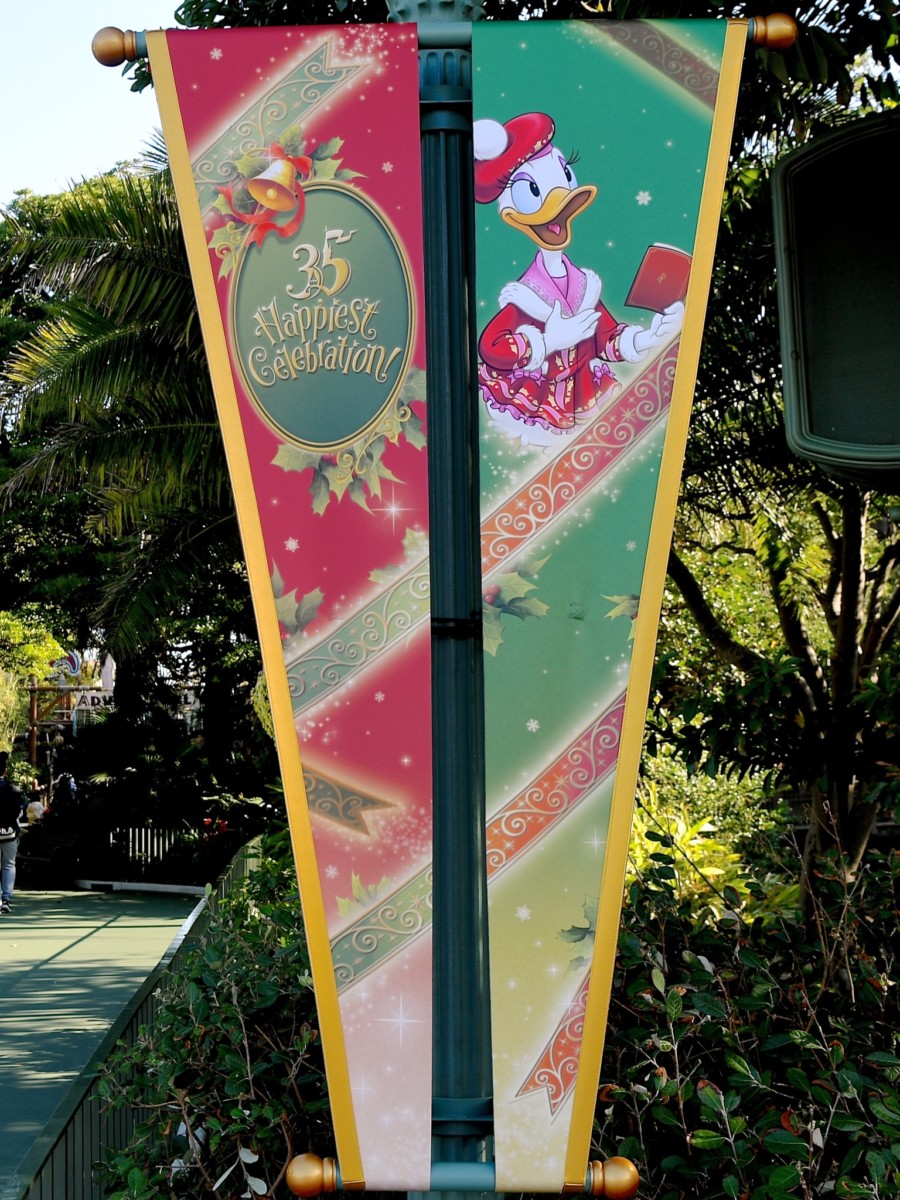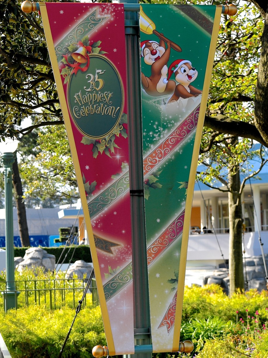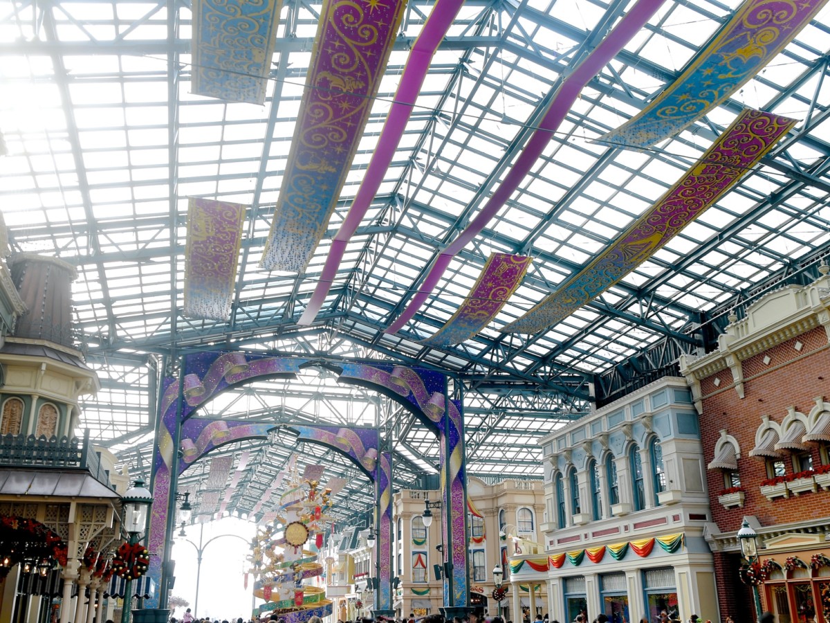 東京ディズニーリゾート35周年“Happiest Celabration!"の飾り付けがされているワールドバザール内もクリスマスカラーに!