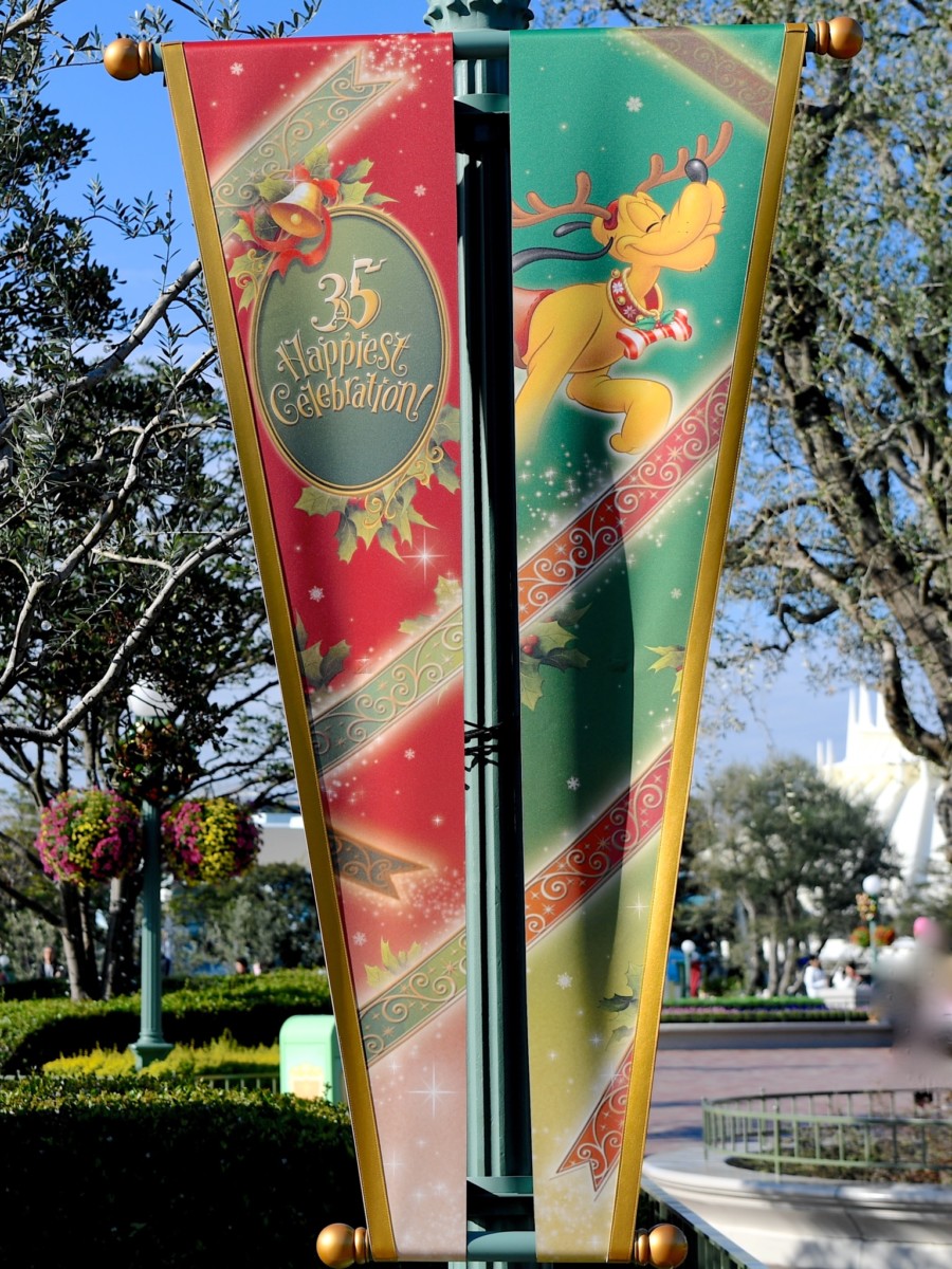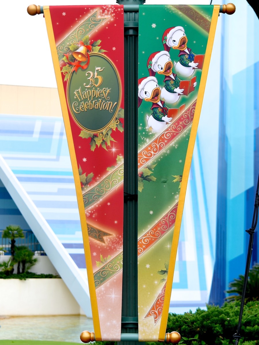 セレブレーションタワーのペナントもクリスマスカラーになっています。