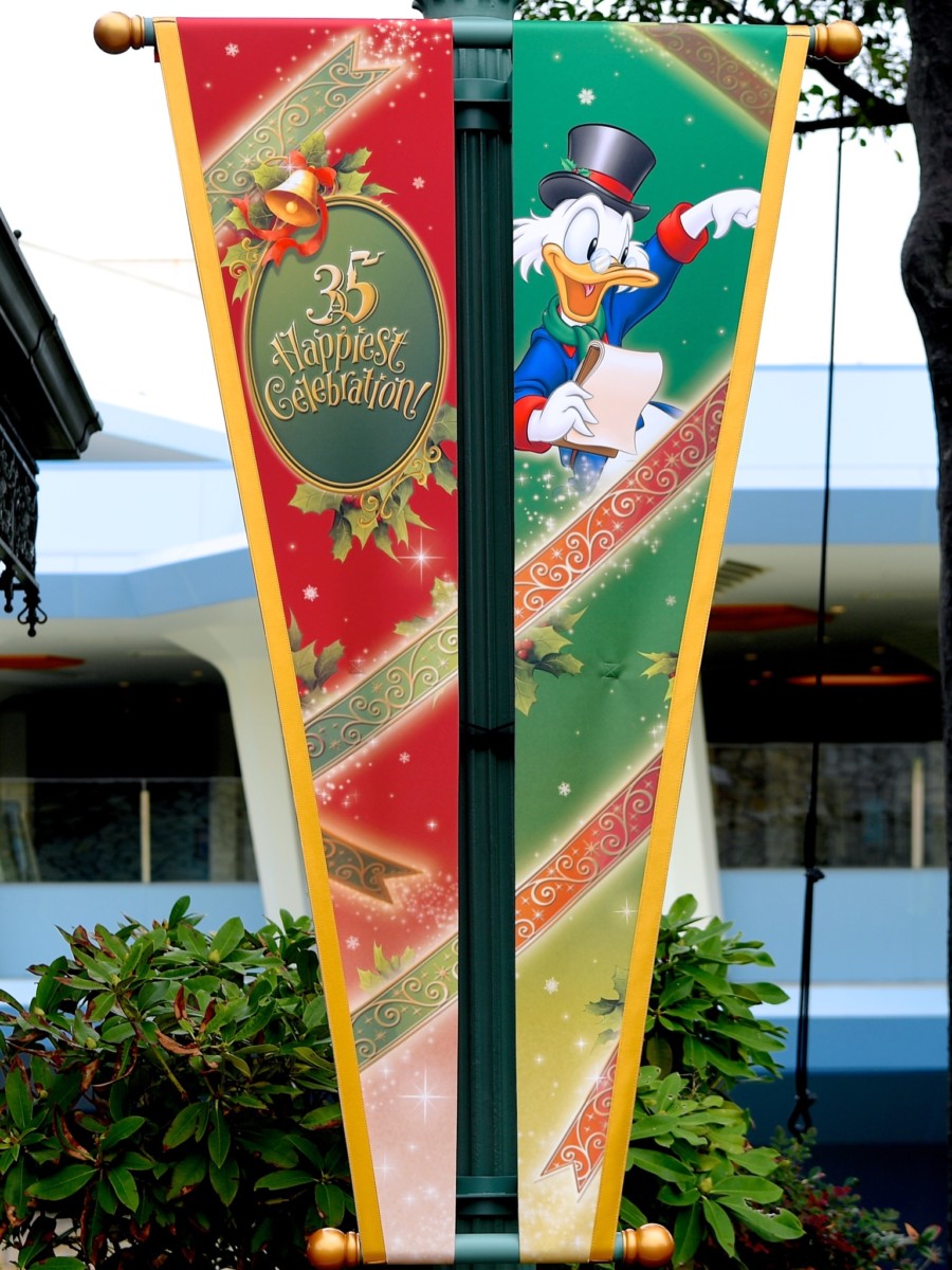 映画『ミッキークリスマス・キャロル』では主役を務めたスクルージのバナーも!