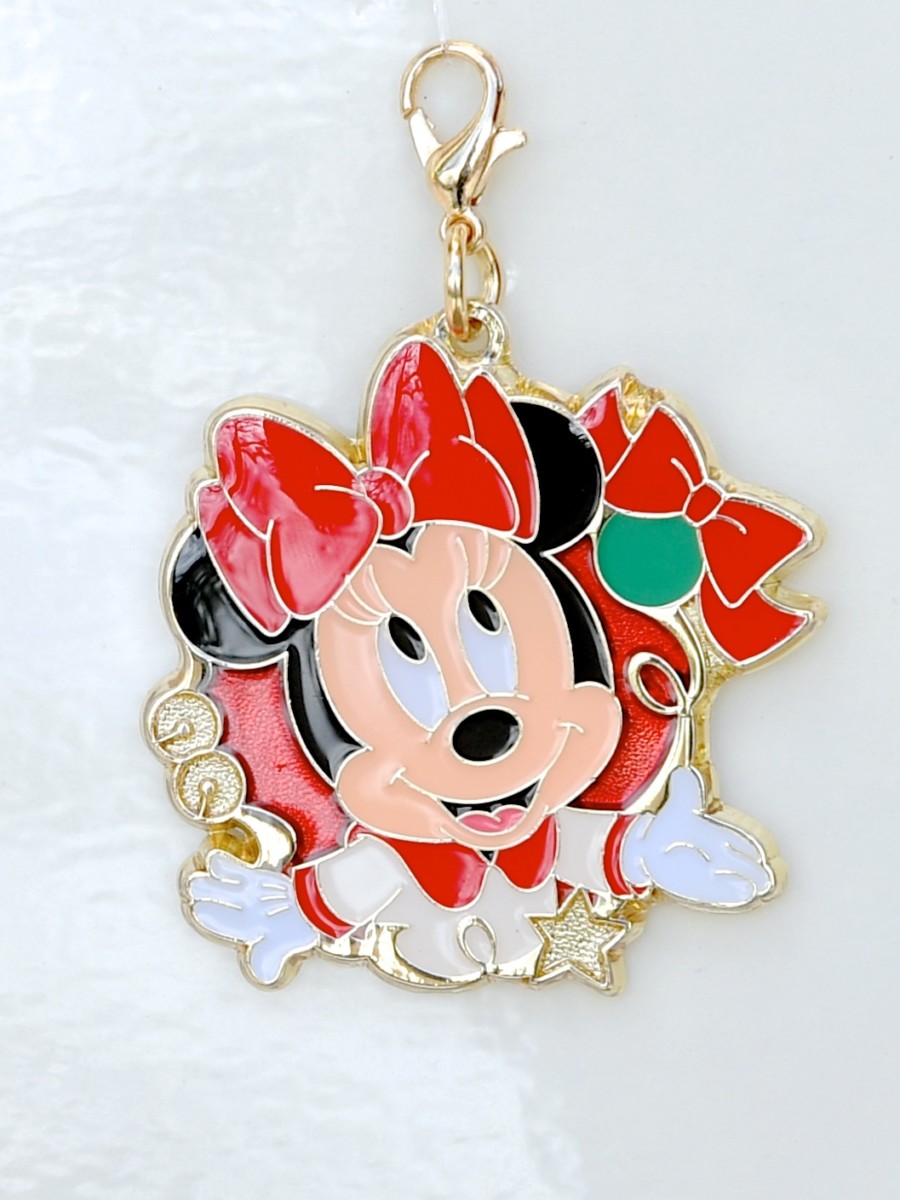 ミニーちゃんは大きな赤いニットリボンをつけたチャーム。