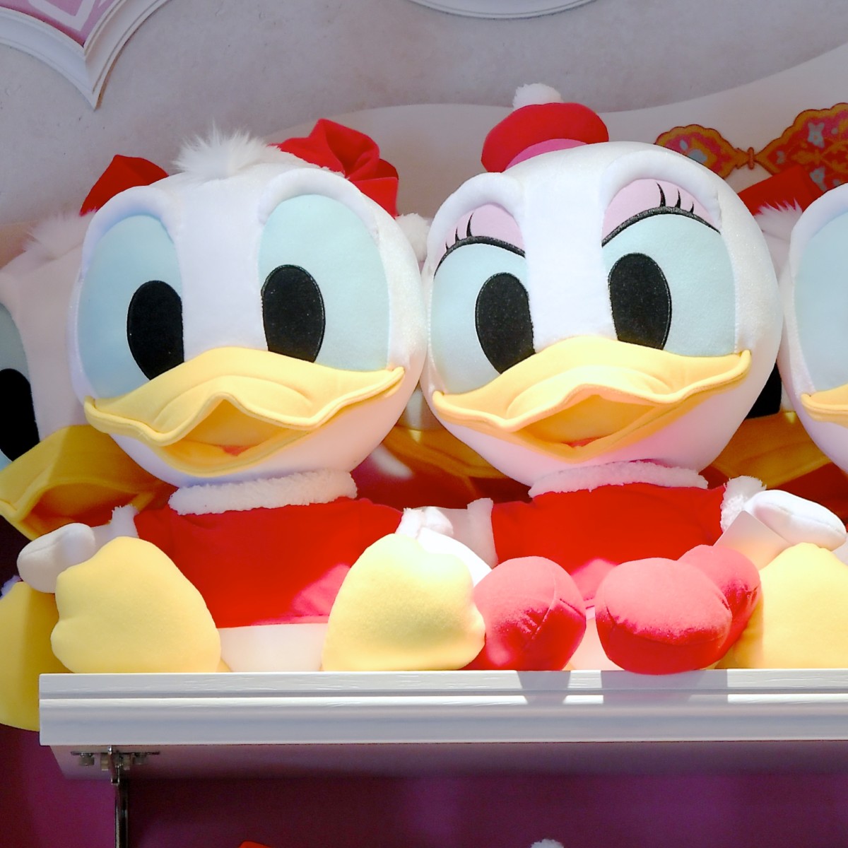 “ディズニー・クリスマス2018”期間中の成功景品はクリスマスのメインパレード「ディズニー・クリスマス・ストーリーズ」コスチュームのドナルド、デイジーのぬいぐるみ。