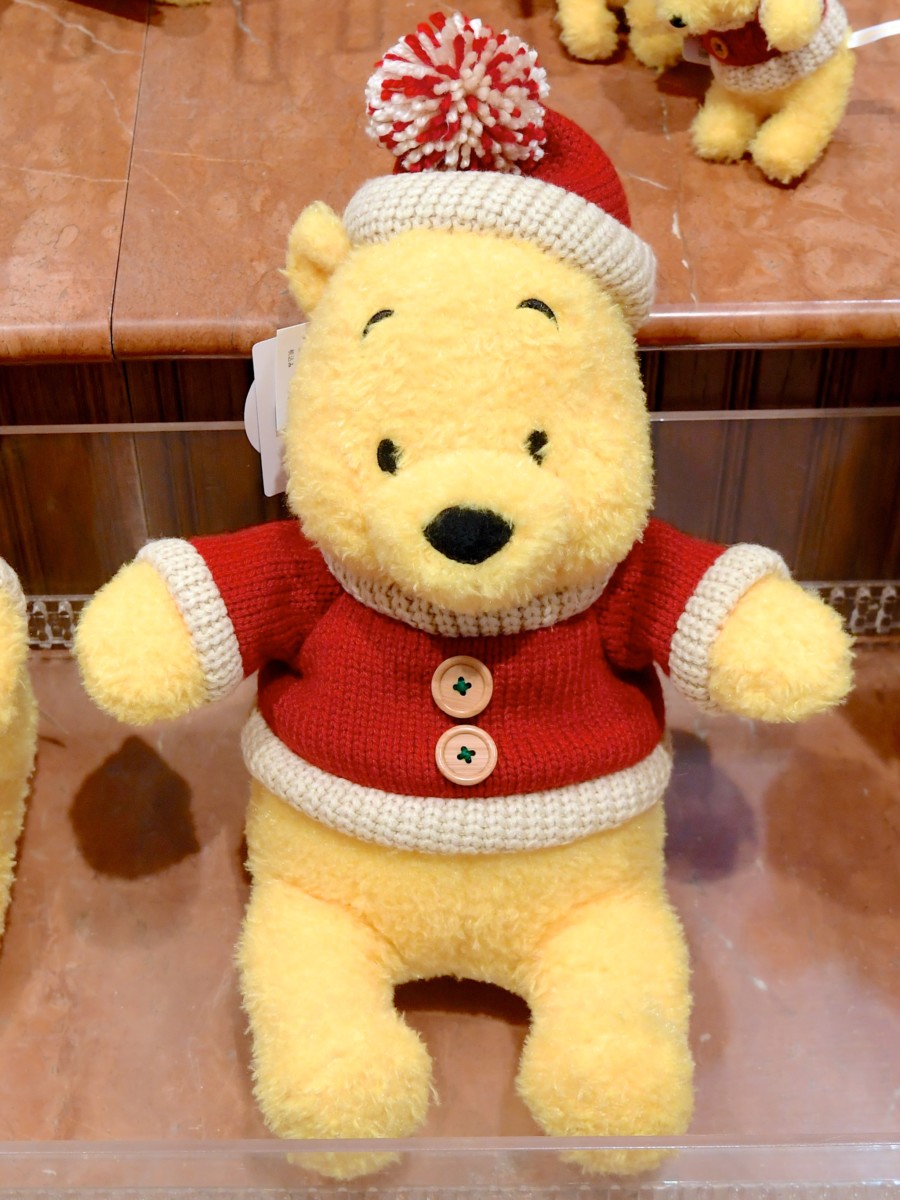 そんなくまのプーさんグッズに「ディズニー・クリスマス」期間中はクリスマスコスチュームを着たプーさんのぬいぐるみ、ぬいぐるみバッジ、ハンドパペットが登場!