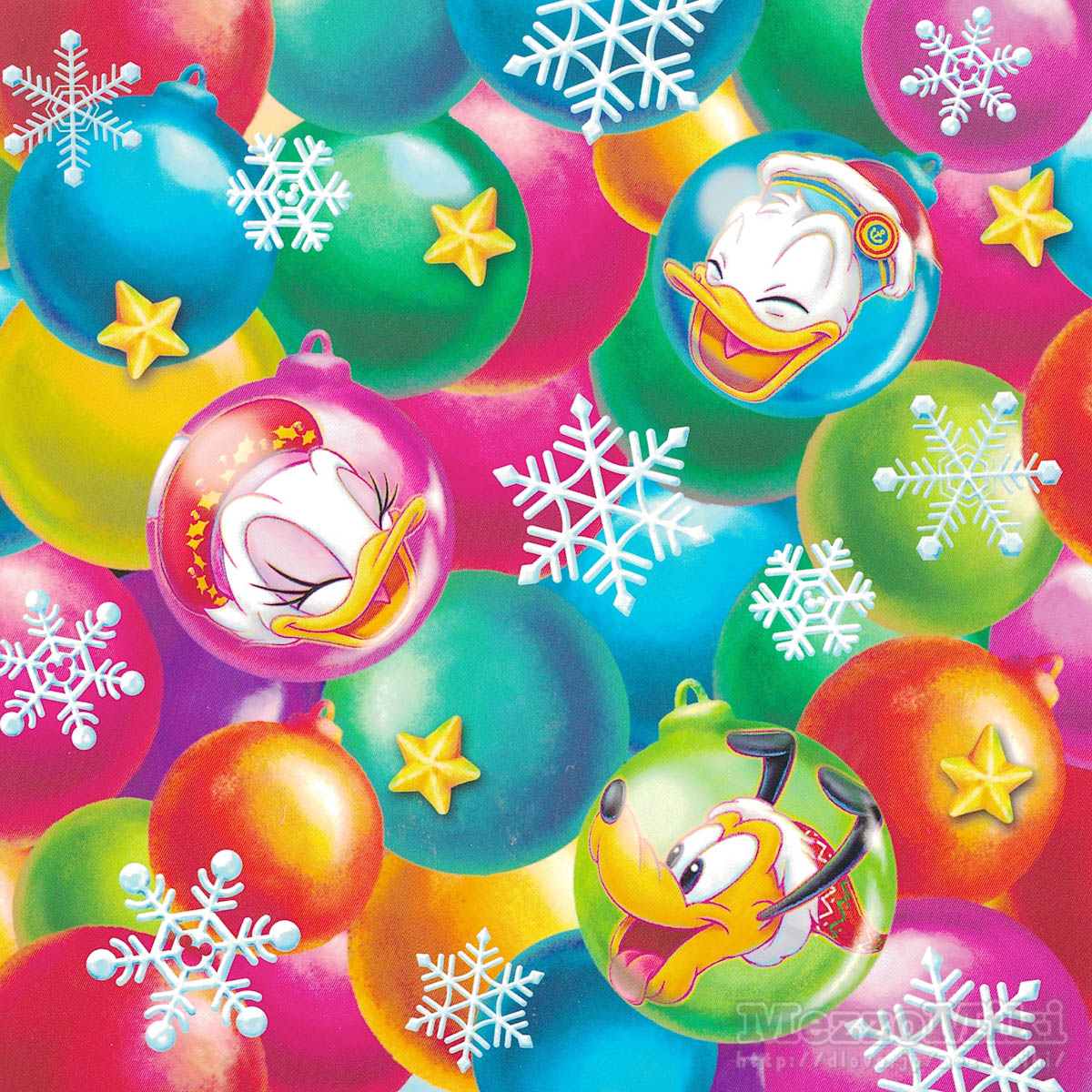 裏面にはカラフルなオーナメントとそこに描かれたミッキー&ミニーのお顔をデザイン。