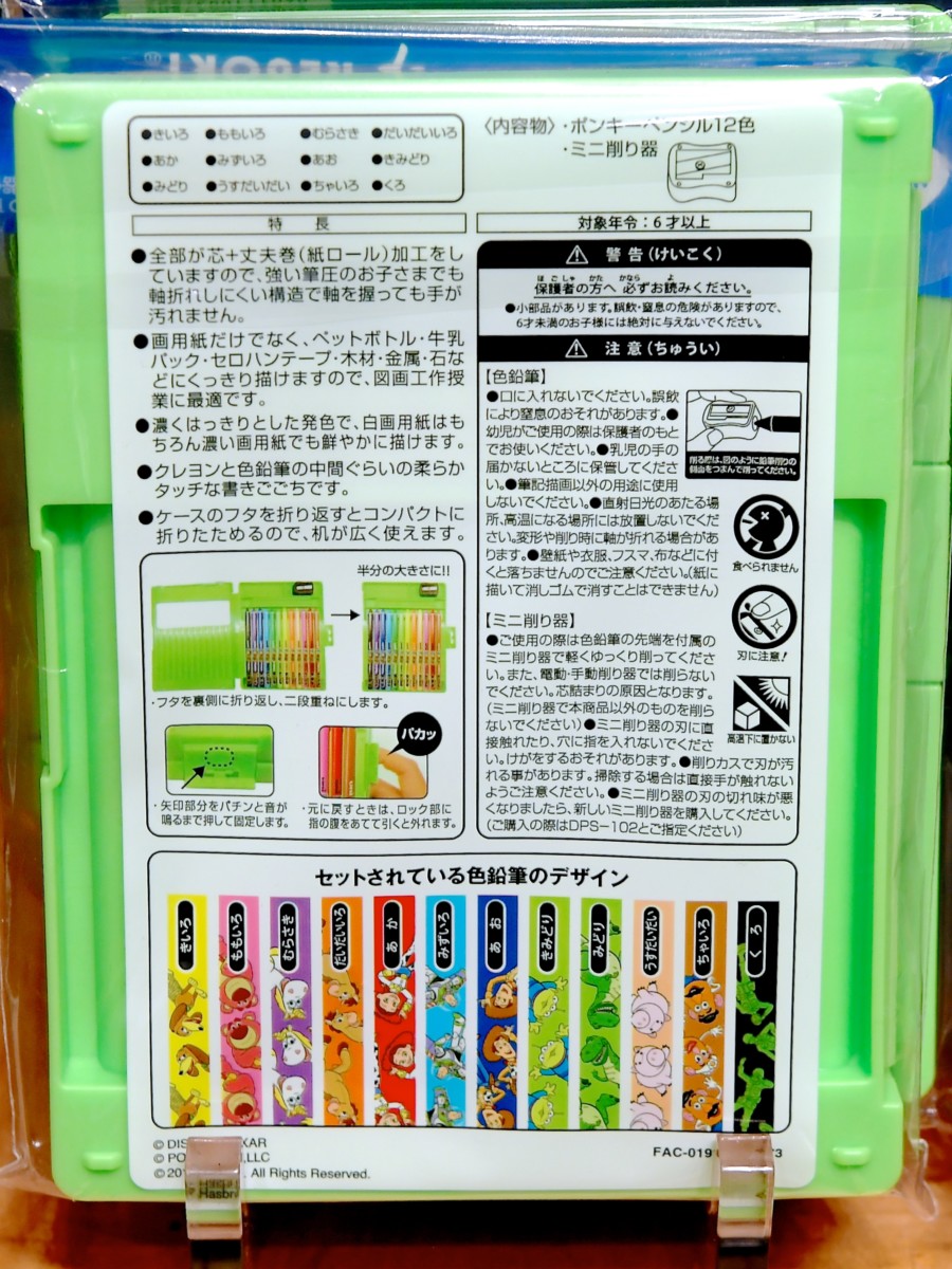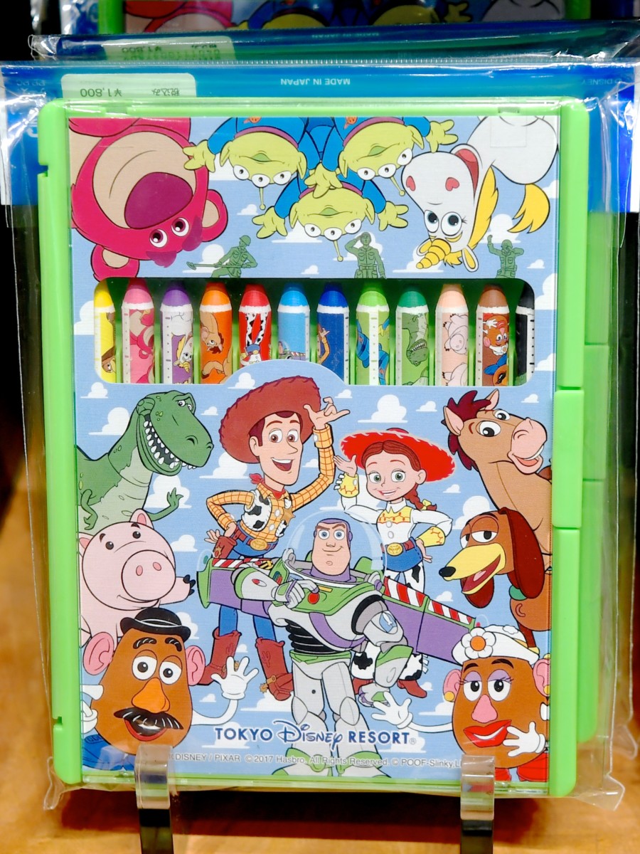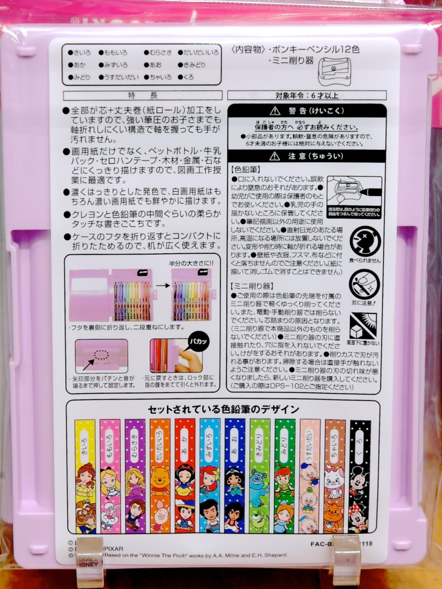 ディズニーキャラ&トイ・ストーリーデザイン!東京ディズニーランド「色えんぴつ12色(ミニ削り器付き)」の紹介でした。