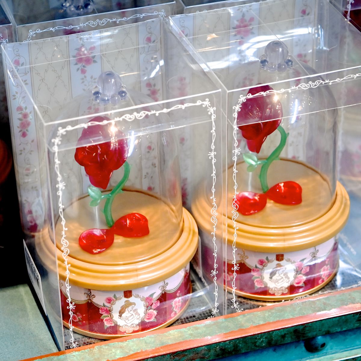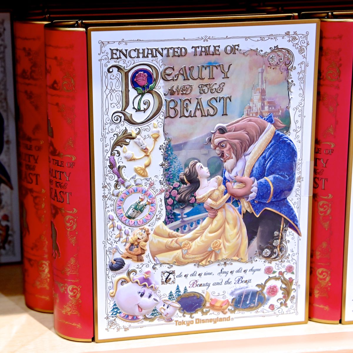 見つめ合うベルと野獣がデザインされたグミ缶。