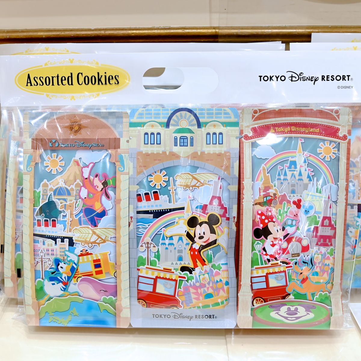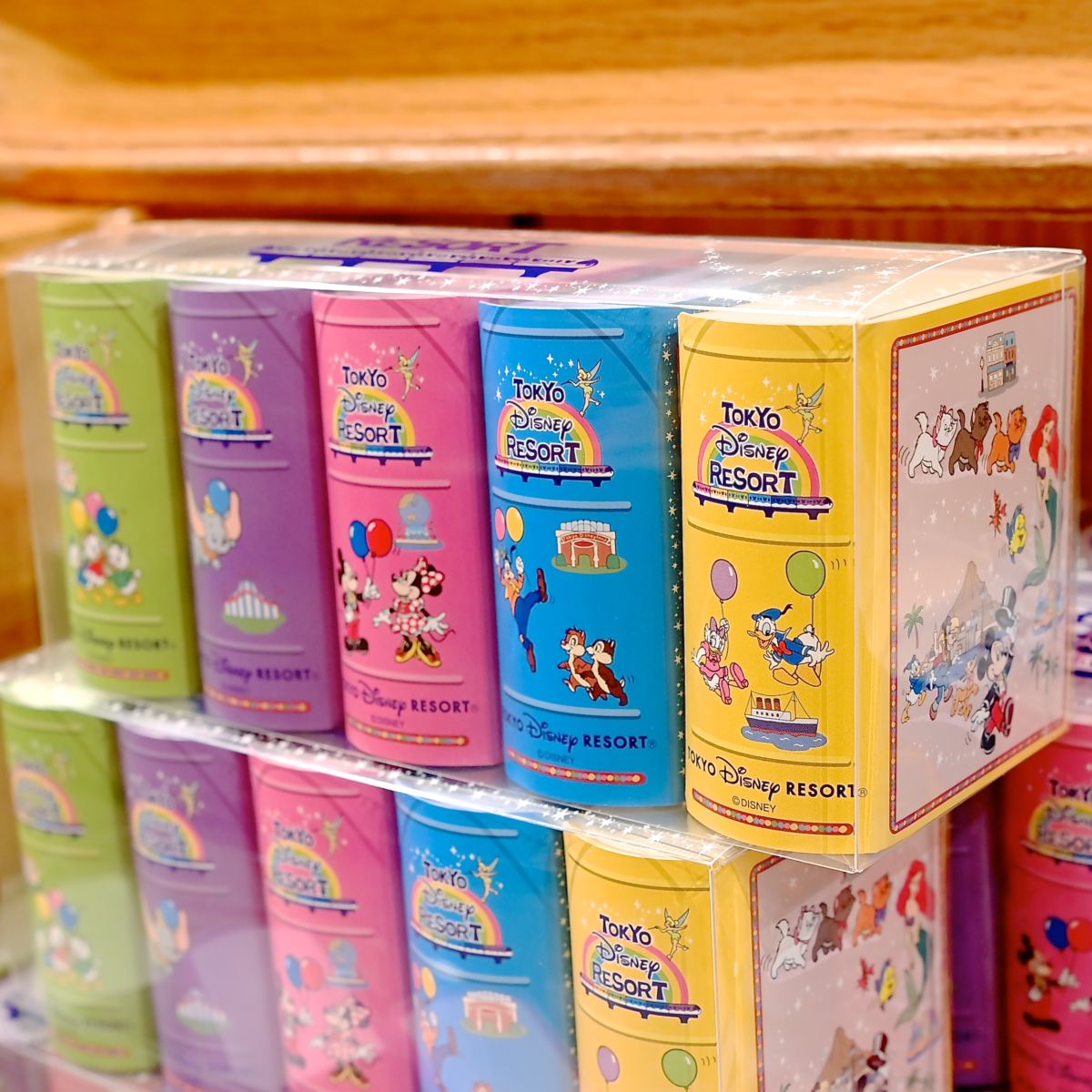 サイドにはミニーマウス、ドナルドダック、デイジーダック、グーフィー、チップ&デール、東京ディズニーリゾートの風景がデザインされています。