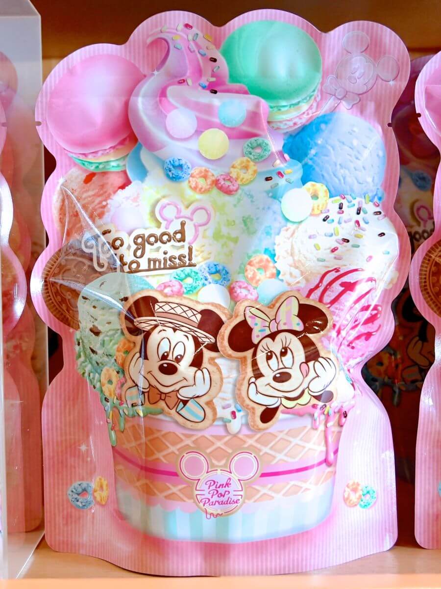 カラフルなアイスクリーム、ほっぺをもったミッキーマウス、ミニーマウスがかわいいパッケージに入っています。