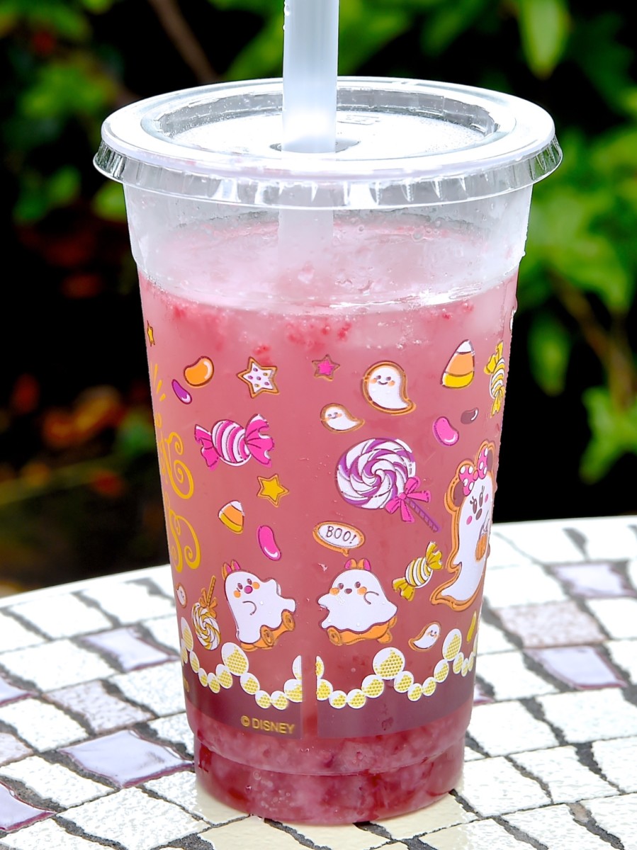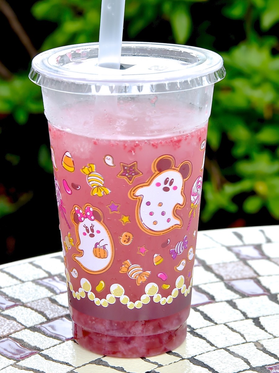 今回は、かわいいお菓子のおばけたちがデザインされたカップに入ったスペシャルドリンク「スパークリングドリンク(グレープ&サワーホワイト)」を紹介します☆