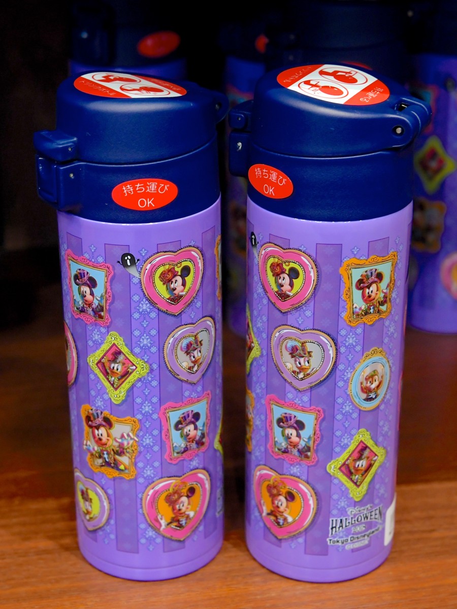 額縁にミッキーたちがデザインされた総柄ドリンクボトル。