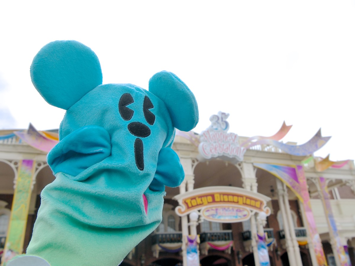 ブルーのグラデーションが新鮮なミッキーおばけのパペット。