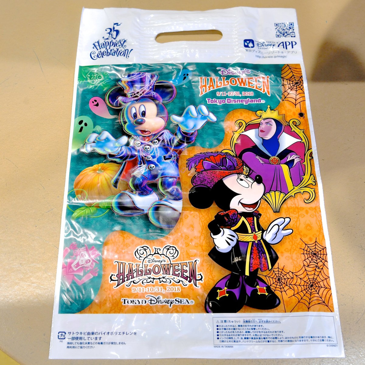 ショッパーは東京ディズニーランド「スプーキー“Boo!”パレード」のミッキーと東京ディズニーシー「ザ・ヴィランズ・ワールド」のミニー&王妃デザインです。