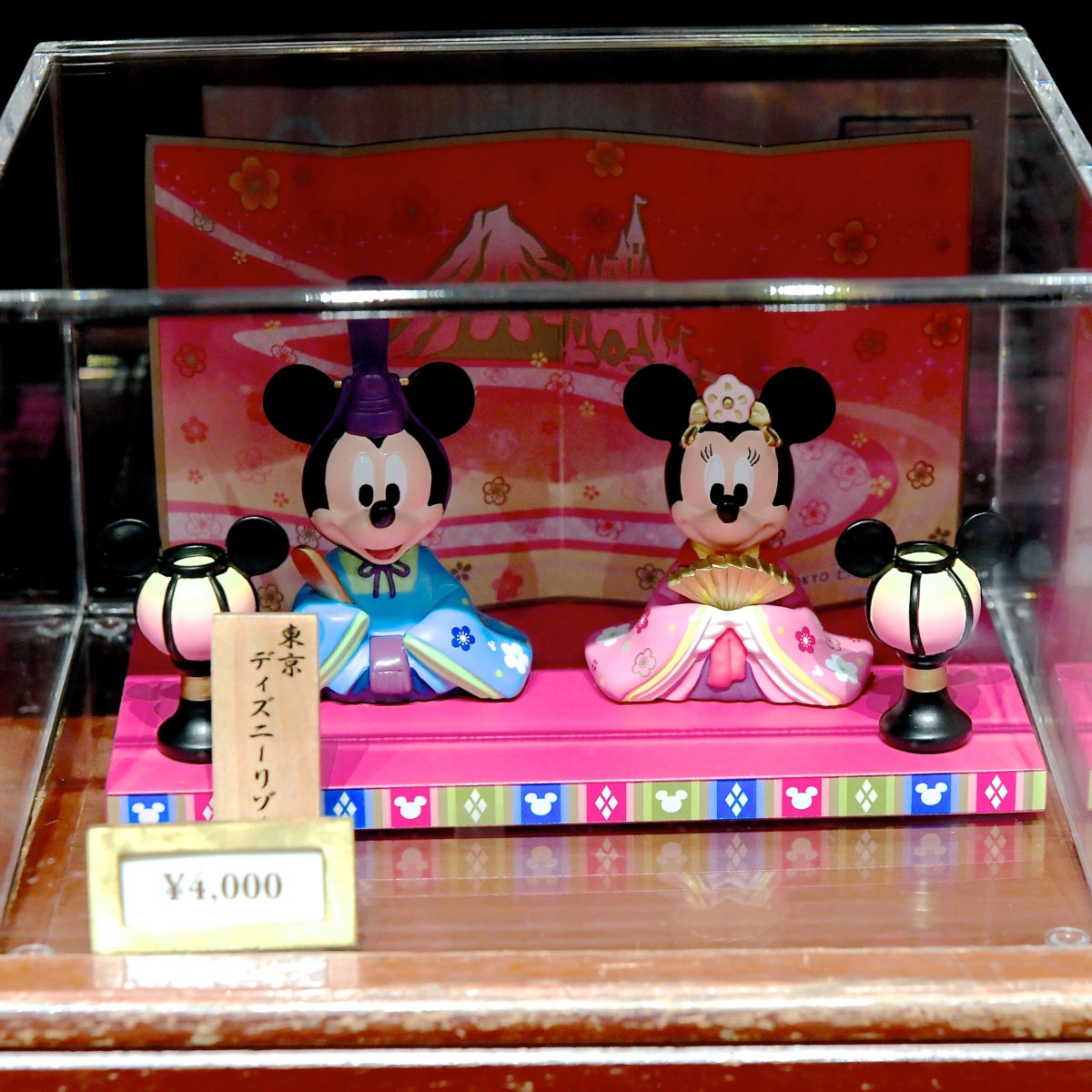豪華な台座も付いたミッキー&ミニーの親王飾り。