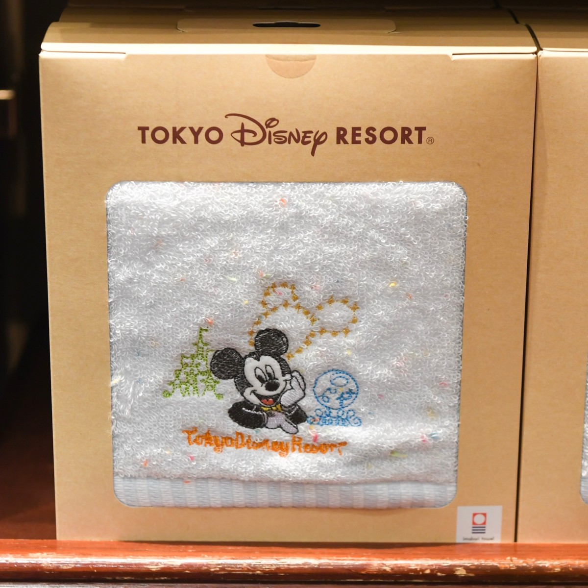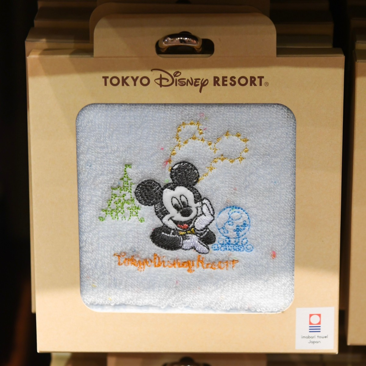 Tokyo Disney Resortの文字に加え、シンデレラ城、アクアスフィアとミッキーマークが刺繍されています。