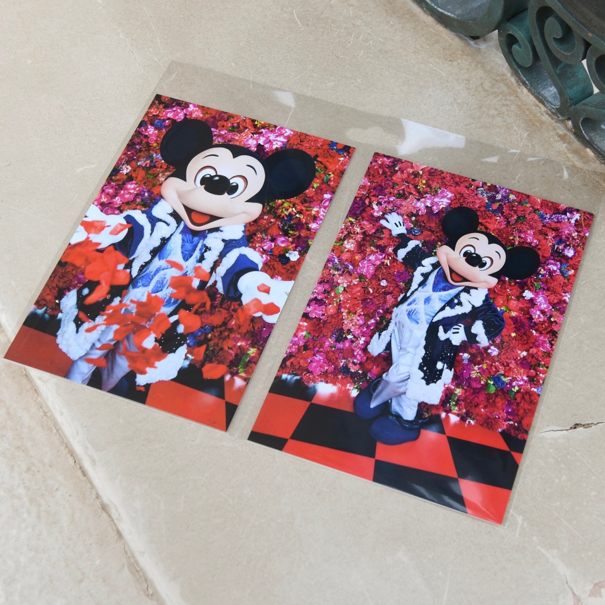 ミッキー&ミニーちゃんの華やかなポストカード&クリアホルダーセット。