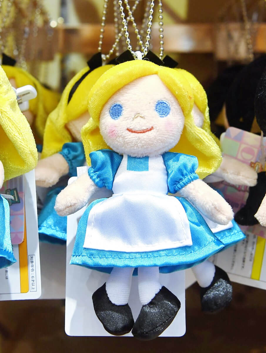 ディズニー映画『ふしぎの国のアリス』の主人公「アリス」の「イッツ・ア・スモールワールド」ぬいぐるみバッジ。