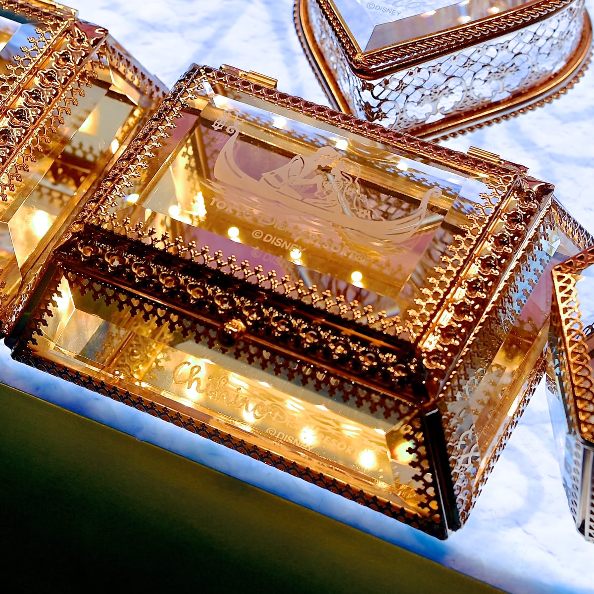 『塔の上のラプンツェル』のラプンツェルとフリン・ライダー(ユージーン)がデザインされたジュエリーボックス。