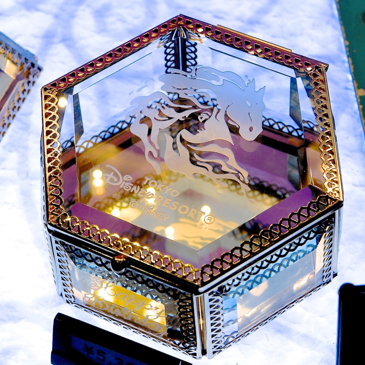 東京ディズニーランドのシンボルであるシンデレラ城がデザインされた六角形のジュエリーボックス。