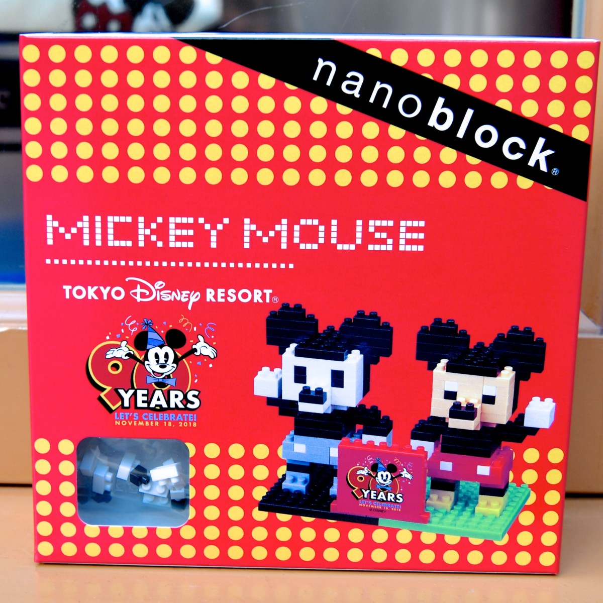 モノクロミッキーとカラーミッキーのセットデザインがかわいいナノブロック。