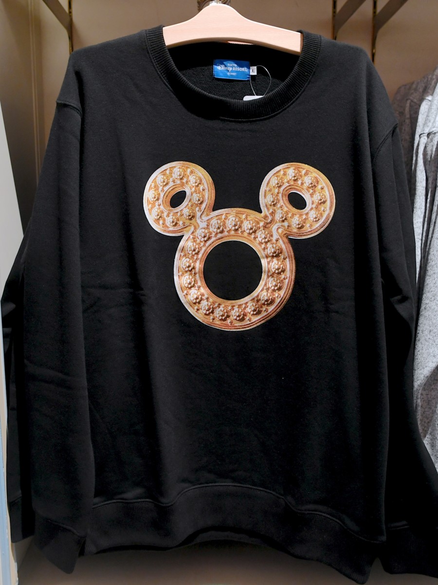 ゴールドのアクセサリー風ミッキーマークがデザインされた目立てるトレーナー。