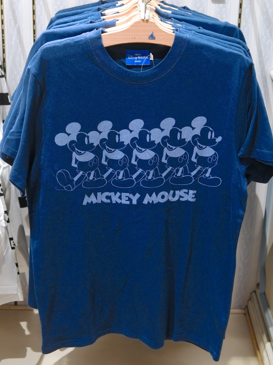 ちょっとダークなブルーカラーにクラシックなミッキーがデザインされたシンプルTシャツ。