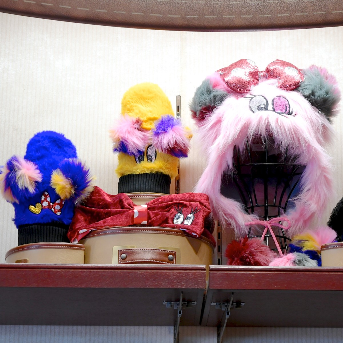 ミニーちゃんモチーフのカラフルなイヤーマッフル。