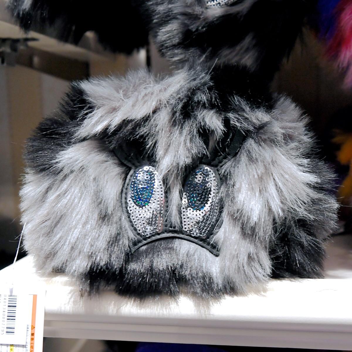 キラキラなお目目とドット柄リボンがデザインされたブラック×グレーのファースヌード。