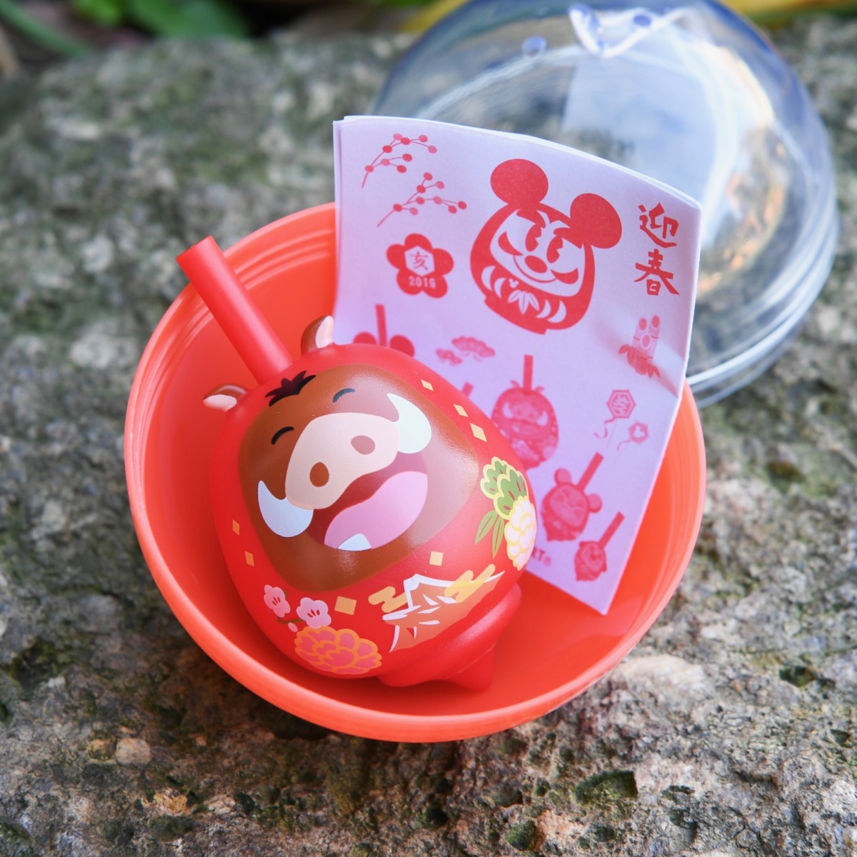 ミッキーだるま、ミニーだるまに加え2019の干支であるイノシシの“プンバァ”、その親友の“ティモン”と“シンバ”デザインの4種類!