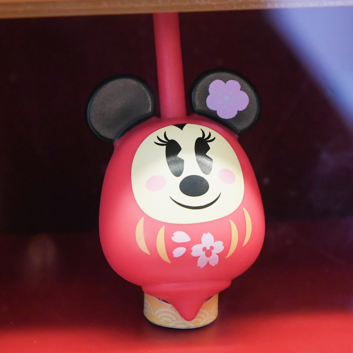 ミニーちゃんだるまはお耳にかわいい梅の花がデザインされています。