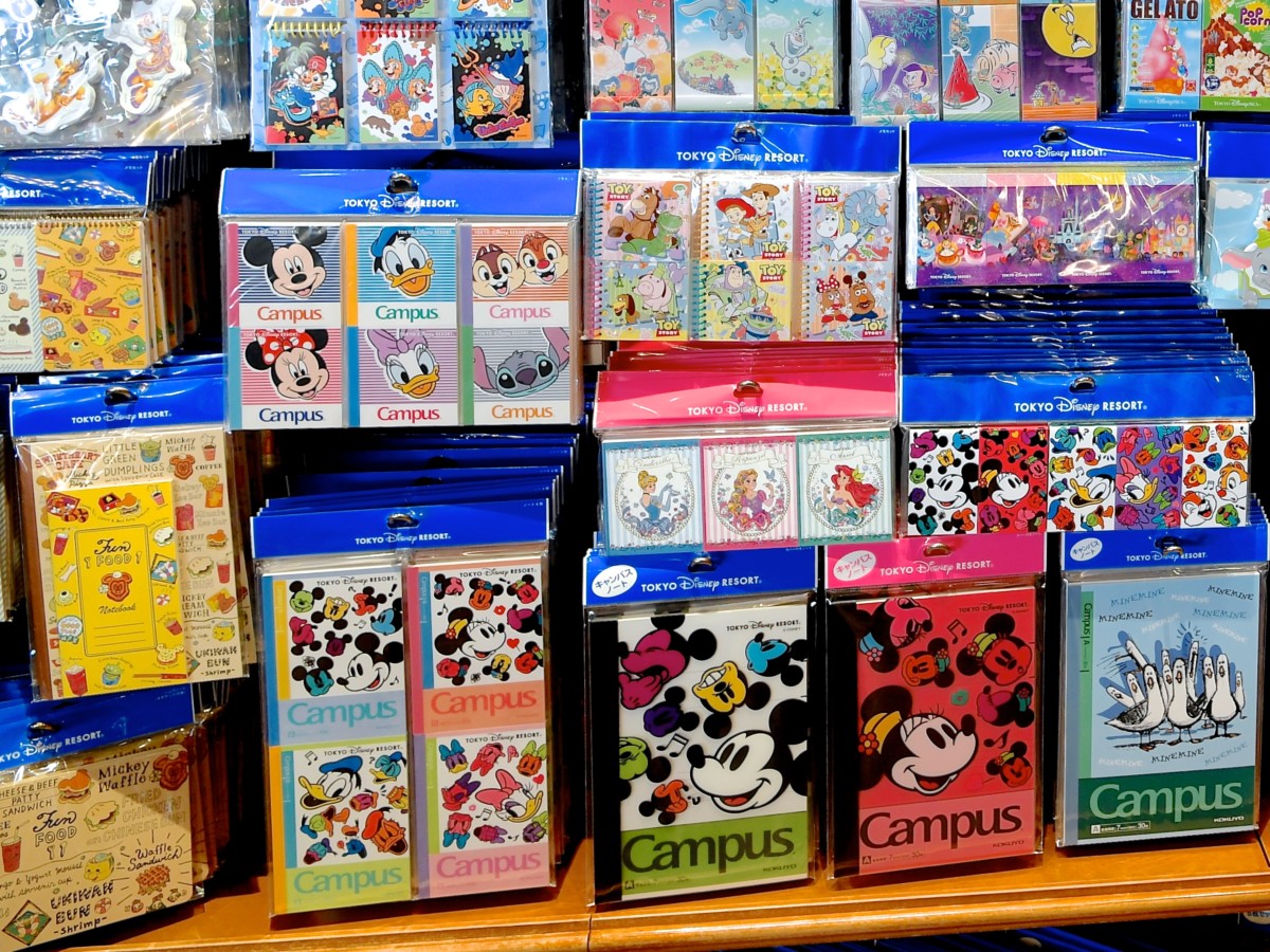 東京ディズニーランド、東京ディズニーシーでは勉強や仕事に使いたいディズニーキャラクターデザインの文房具(ステーショナリー)を種類豊富に販売中!