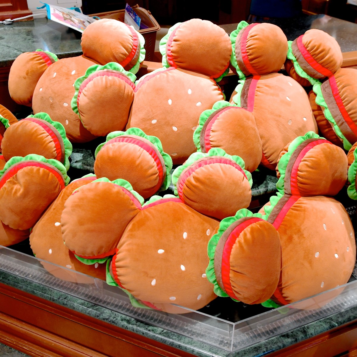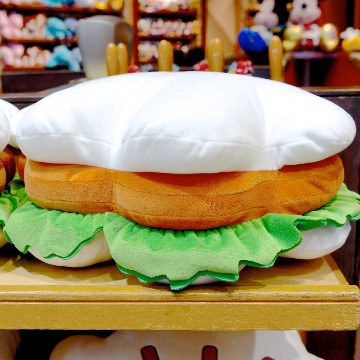 ミッキーシェイプのハンバーガーをモチーフにしたクッションも販売中です☆